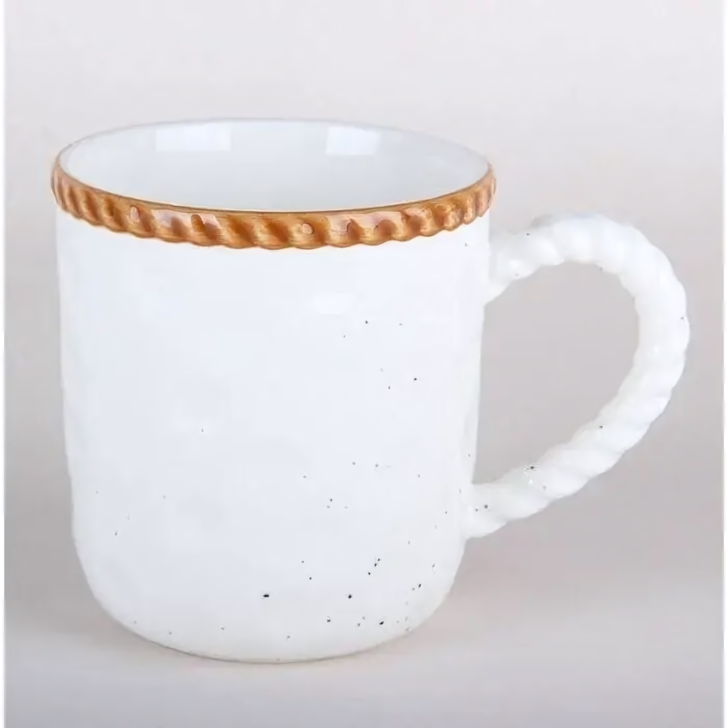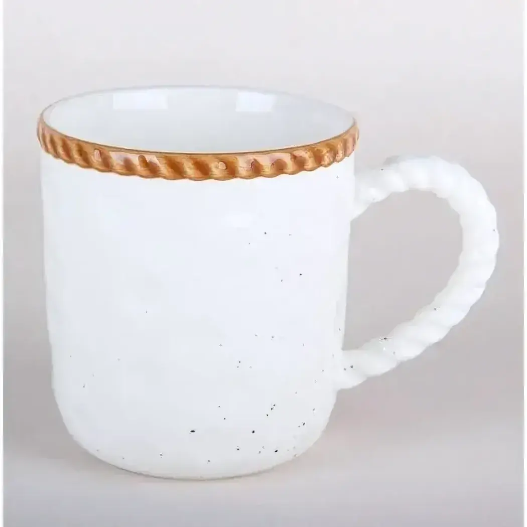 Керамическая кружка с авторским дизайном станет изюминкой чаепития и практичным дополнением сервировки. Уникальное сочетание белого фона с контрастными чёрными вкраплениями и позолоченной спиралью создаёт эффект luxury-подарка, а удобная ручка с фактурой плетения обеспечивает комфортный захват.