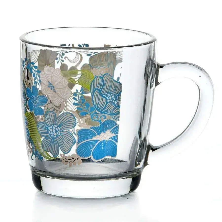 Прозрачная стеклянная кружка объемом 350 мл с уникальным орнаментом "БЛЮ ДРИМ" станет вашим любимым аксессуаром для утреннего кофе или вечернего чая. Тонкая цветочная роспись превращает обычную кружку в предмет искусства.