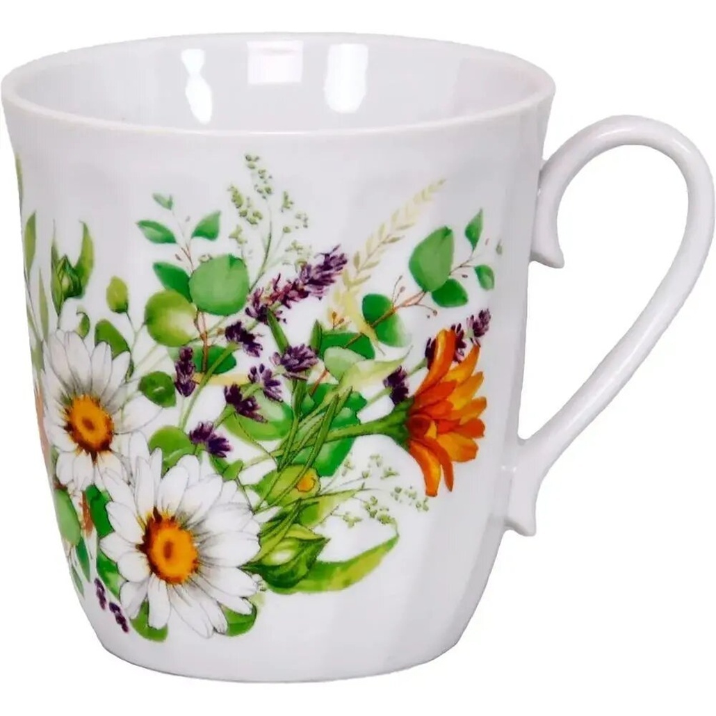Кружка фарфоровая с ручной росписью "Луговые ромашки", 350 мл, витой дизайн, цвет в ассортименте