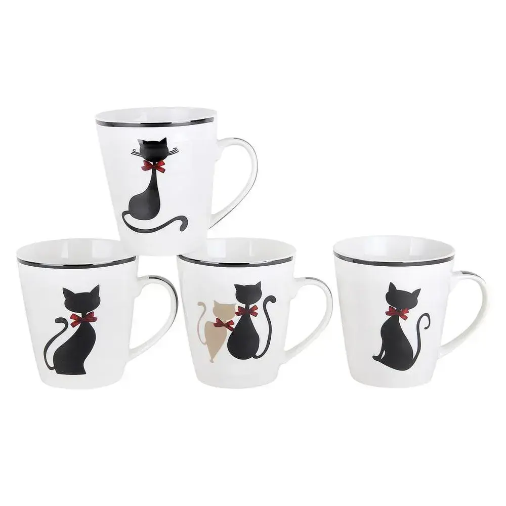 Объём 350 мл оптимален для любителей наслаждаться напитками не торопясь. Гладкие стенки сохраняют температуру содержимого, а закруглённый край не оставляет следов на губах. Особенность коллекции — детализация рисунков: котики с бантами, динамичные позы и контрастные чёрно-красные акценты на белоснежном фоне.