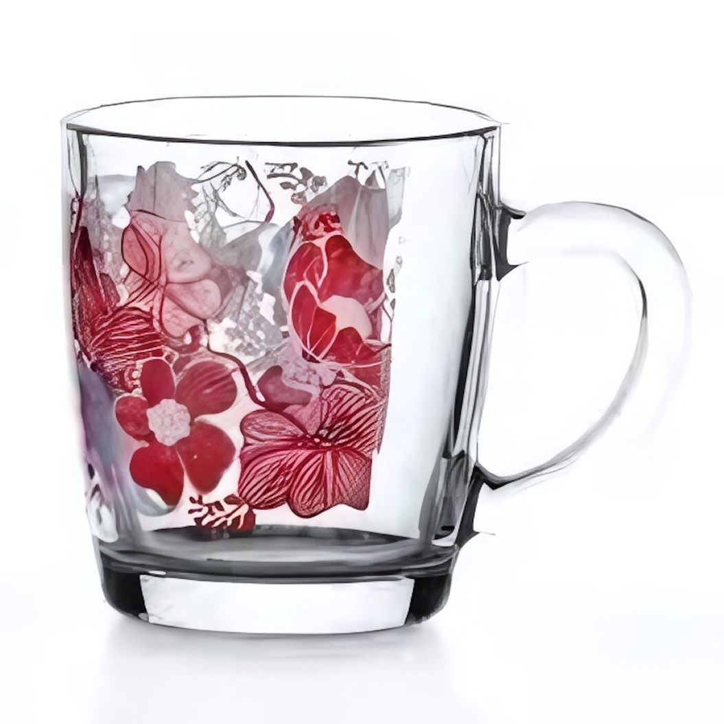 Стеклянная кружка «Рэд дрим» сочетает в себе изысканный дизайн и практичность. Цветочный орнамент в благородных красных и серых тонах добавит нотку уюта вашему чаепитию или утреннему кофе.