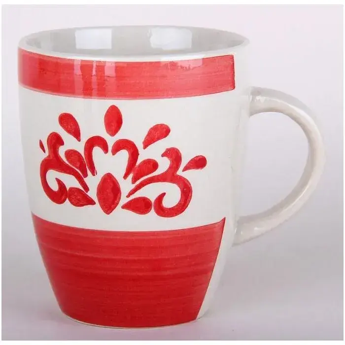 Кружка керамическая 360 мл, бордовый с декоративным узором, эргономичная ручка