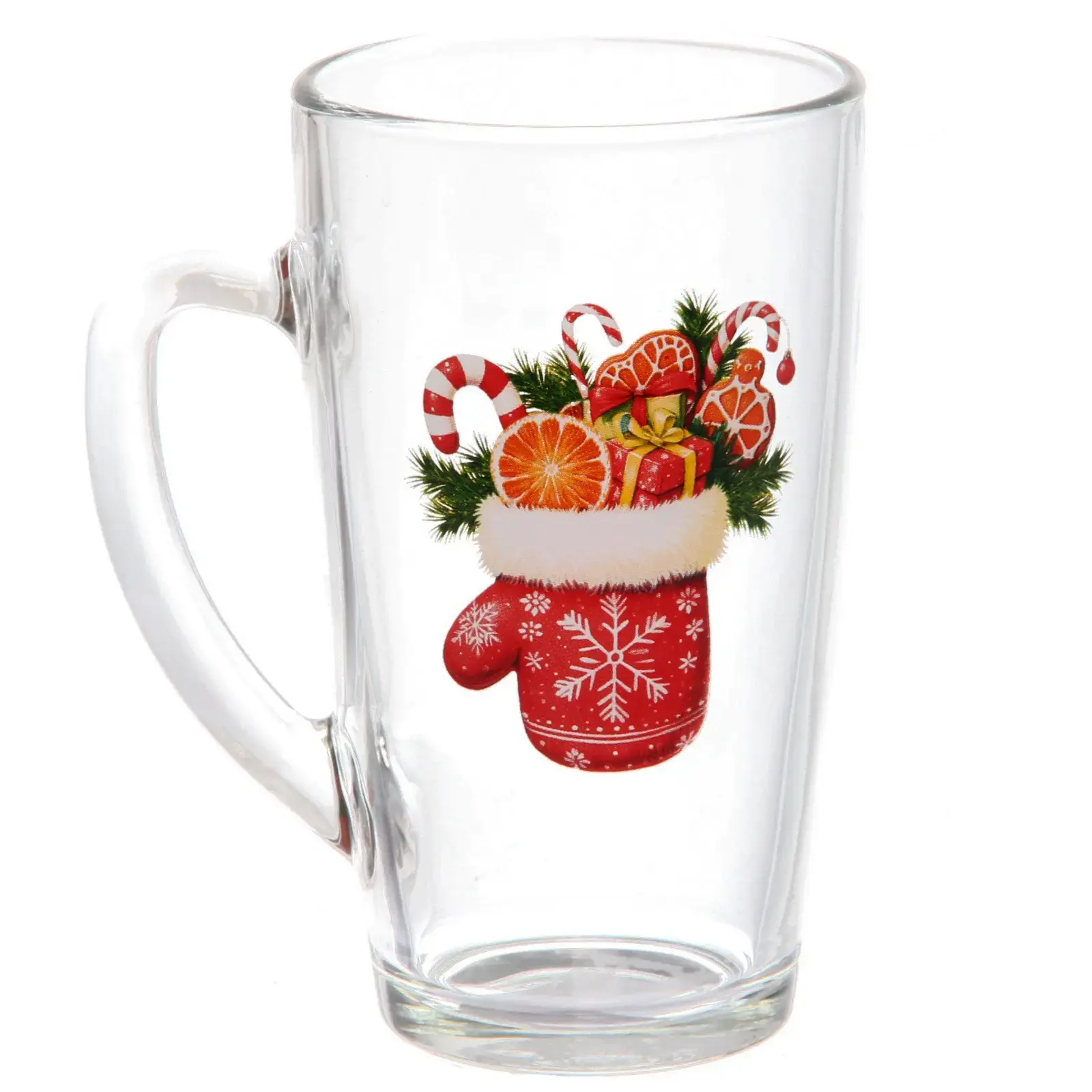 Кружка стеклянная 400мл «Зимняя фантазия», с ручкой, дизайн варежки