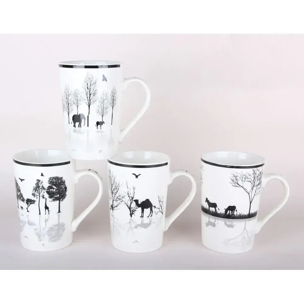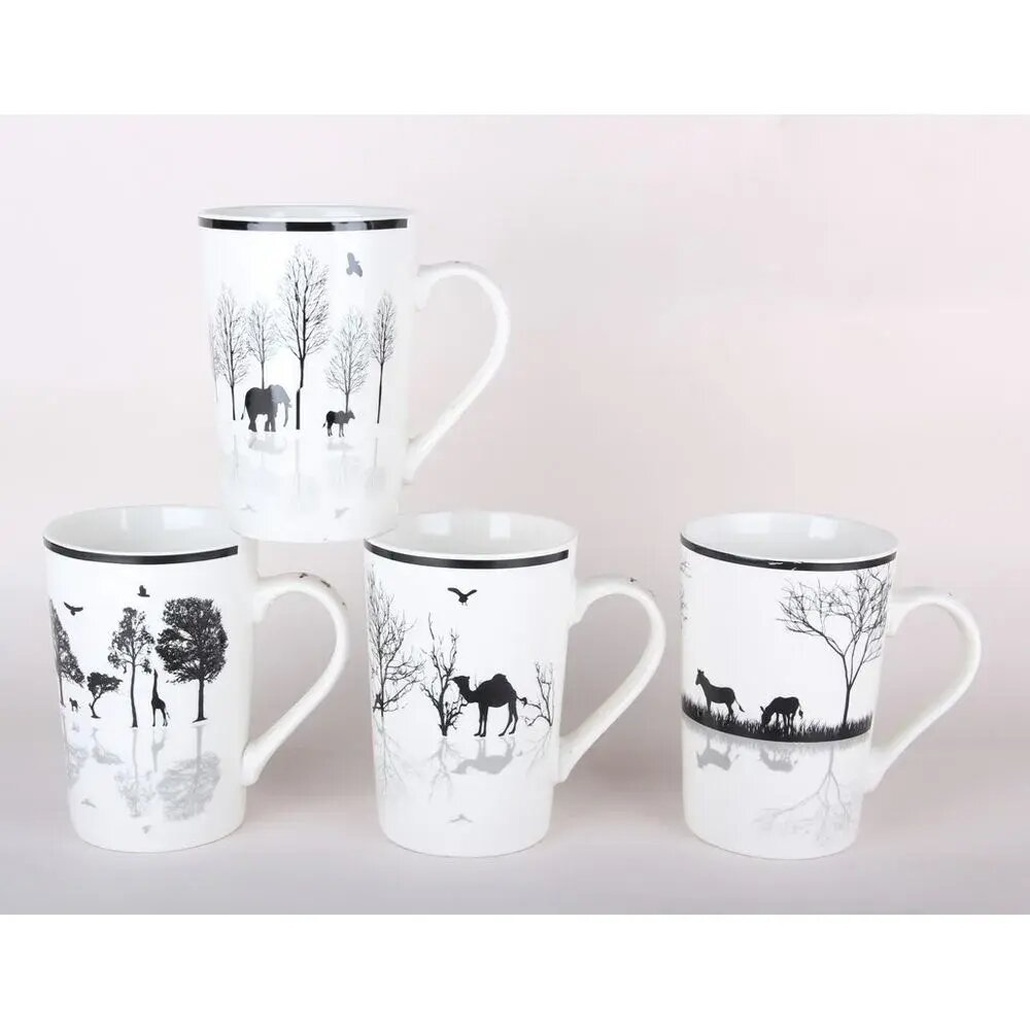 Кружка керамическая 420 мл с рисунком животных, 4 дизайна, черно-белая гамма