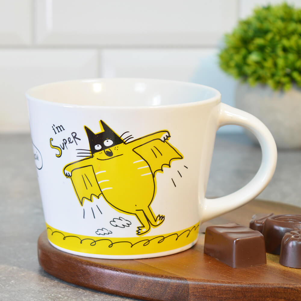 Кружка фарфоровая 'Лови удачу' 430мл, с ярким принтом кота и надписью
