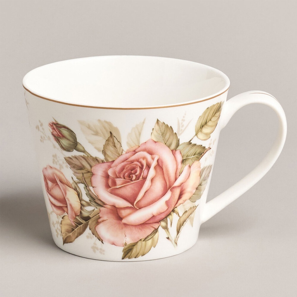 Кружка фарфоровая 450мл 'Корейская роза', с золотой каемкой, цветочный принт