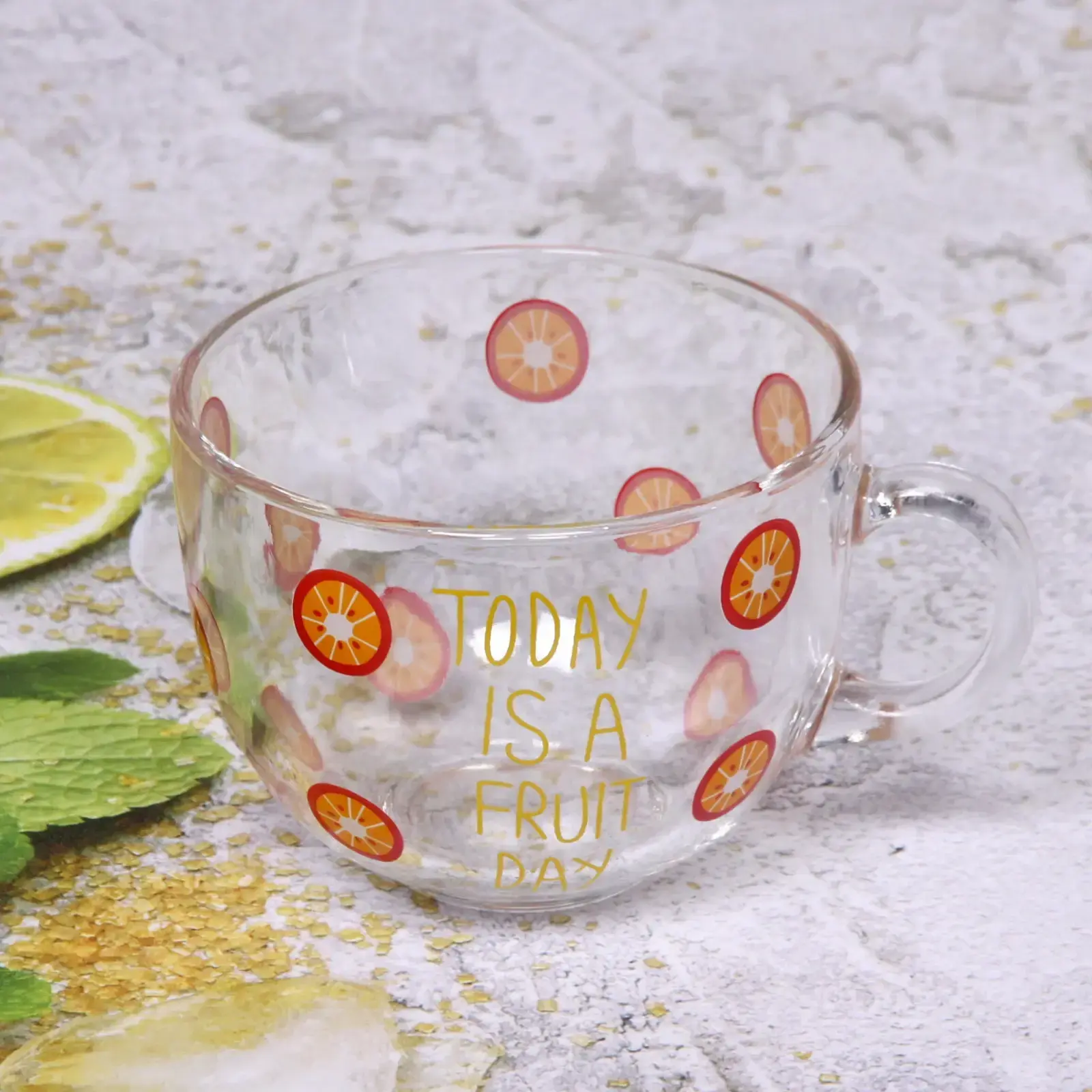 Кружка имеет стандартный размер, что делает ее универсальной для любых напитков. Прозрачный материал позволяет видеть содержимое, а яркие рисунки делают ее привлекательной. Используйте ее для подачи молока, соков или даже десертов — она станет настоящим украшением вашего стола.