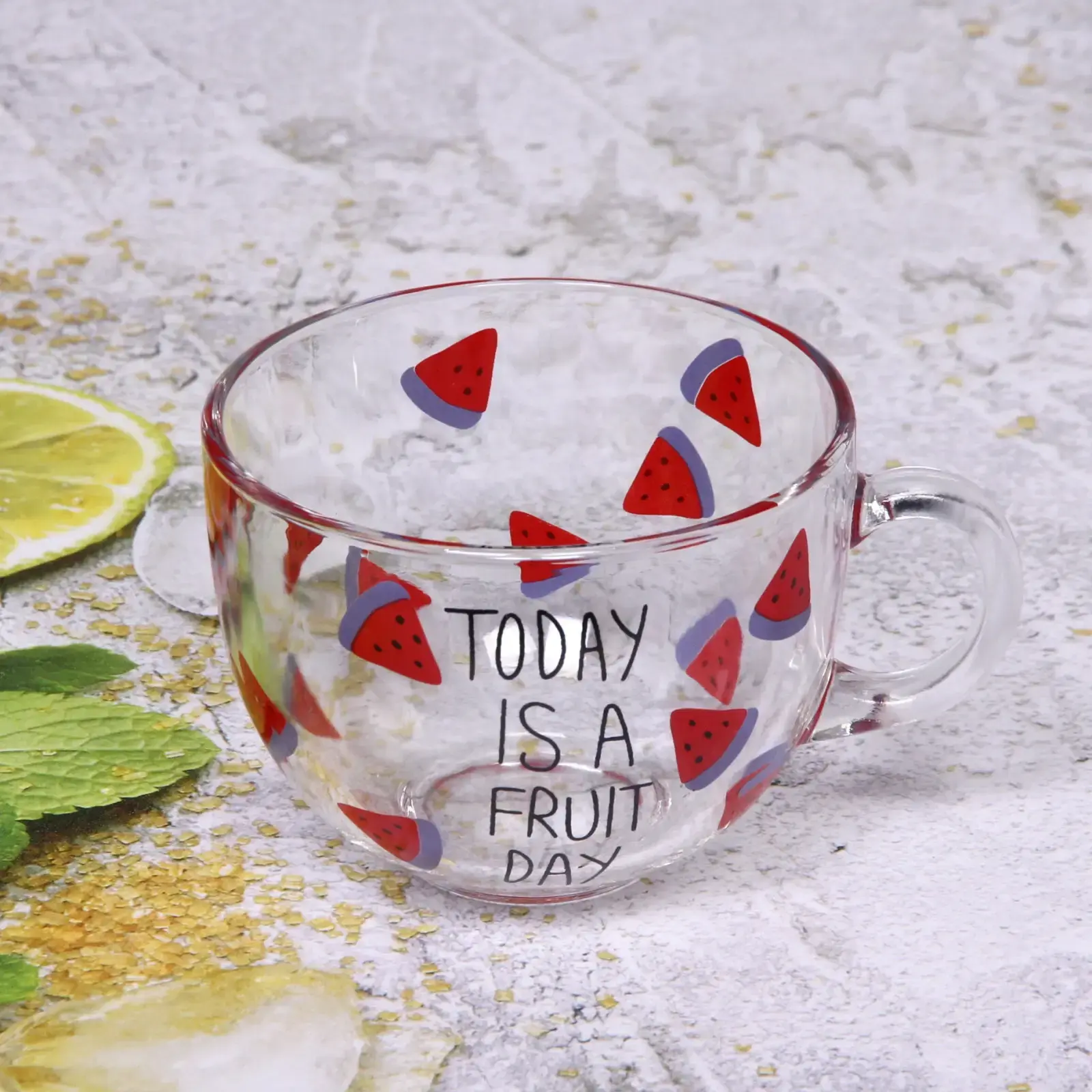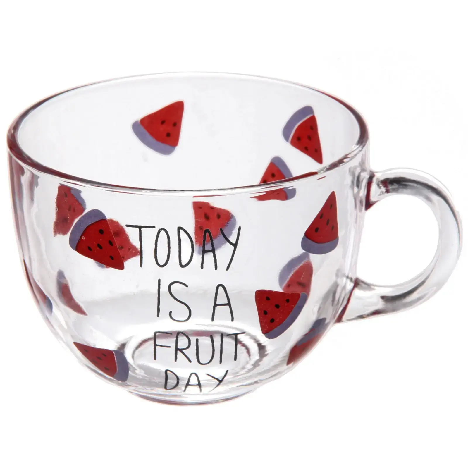 Эта кружка станет не только практичным, но и стильным дополнением вашей кухонной посуды. С объемом 460 мл и уникальным дизайном с изображением дольков арбуза, она идеально подходит для сервировки ваших любимых напитков. Яркие цвета и надпись «TODAY IS A FRUIT DAY» создают атмосферу свежести и радости, что делает каждое использование кружки особенным.