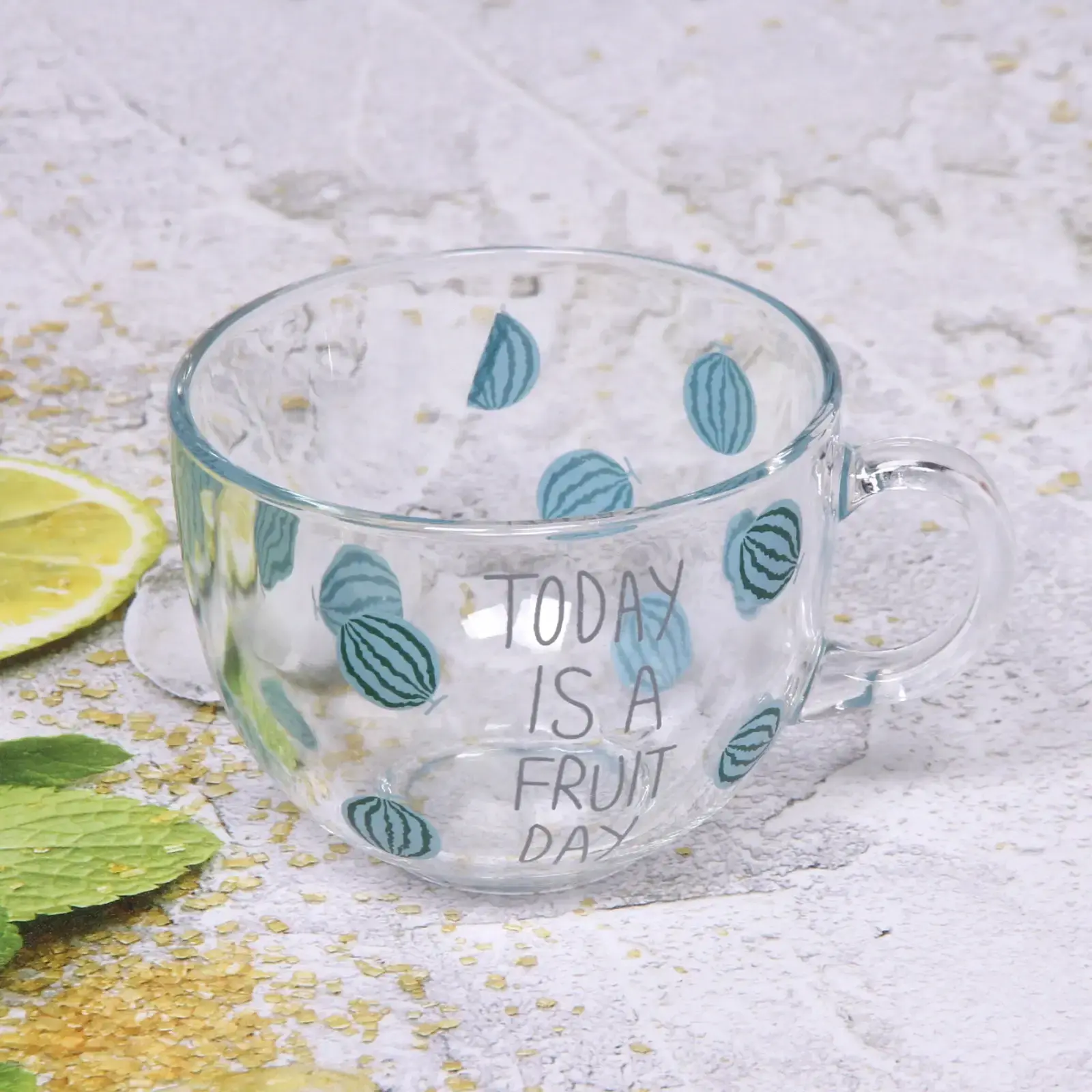 Эта кружка станет не только стильным дополнением вашей кухонной посуды, но и источником удовольствия от каждого глотка. Прозрачный материал позволяет наслаждаться цветом ваших любимых напитков, а оригинальный узор в виде арбузов добавляет яркости и свежести. Кружка объемом 460 мл идеально подходит для чая, кофе или освежающих соков, что делает её универсальным решением для любого случая.
