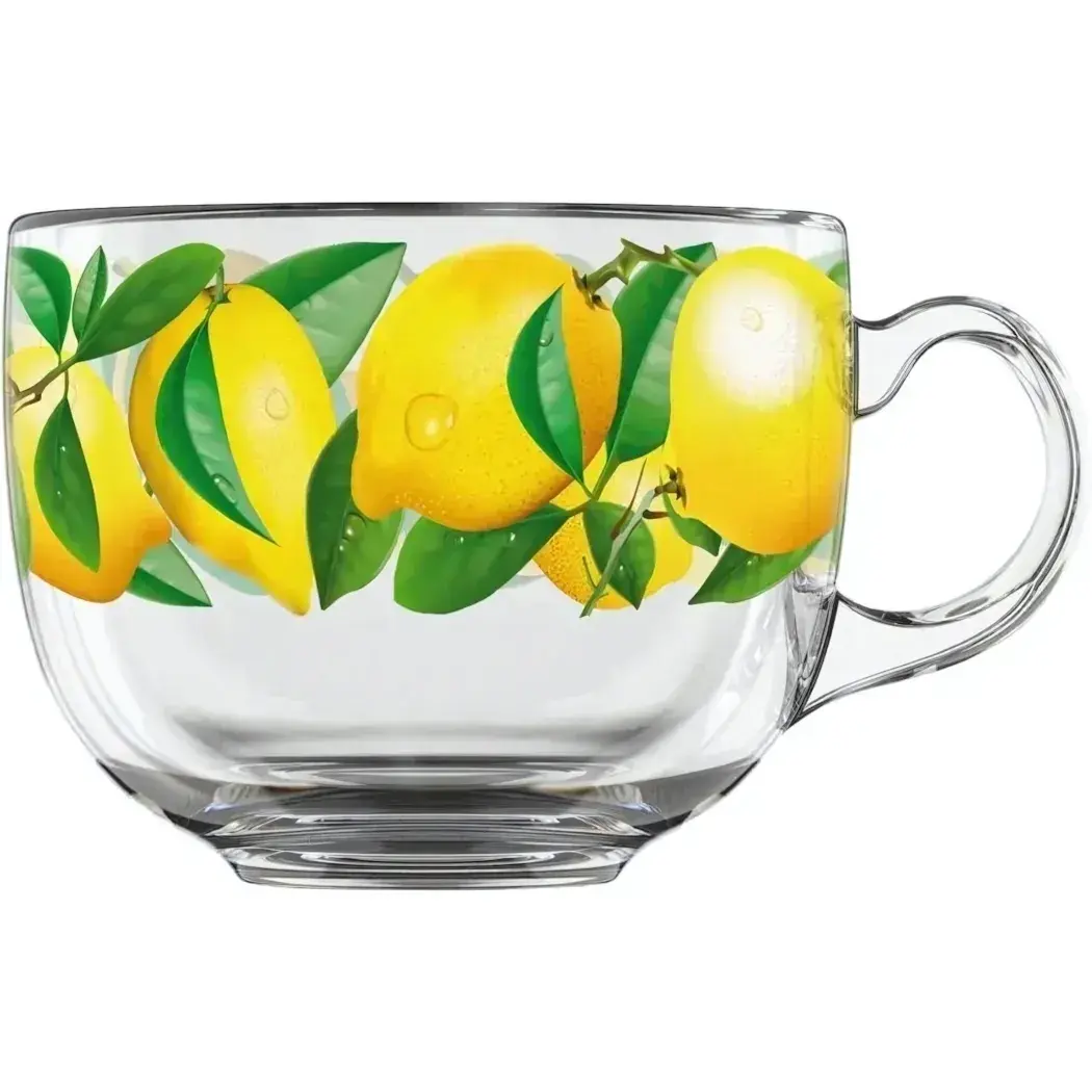 Наслаждайтесь любимыми напитками в эстетичной стеклянной кружке, украшенной сочными лимонами и зеленой листвой. Идеальный баланс функциональности и декора — прозрачное стекло подчеркивает красоту натуралистичного дизайна, создавая ощущение свежести в любой обстановке.