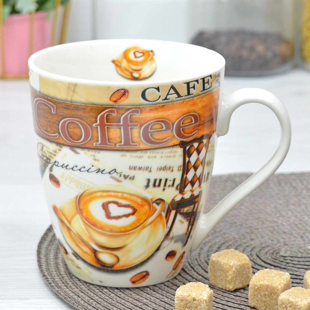 Кружка фарфоровая с кофейным дизайном, 500 мл, для чая и кофе, удобная ручка