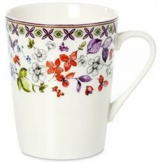 Эта изящная кружка создана для тех, кто ценит уютные моменты с любимым напитком и красивую сервировку стола. Белоснежный фарфор с ярким цветочным орнаментом в верхней части придаёт изделию особое очарование, а утончённые детали превращают обычный чай или кофе в маленький праздник.