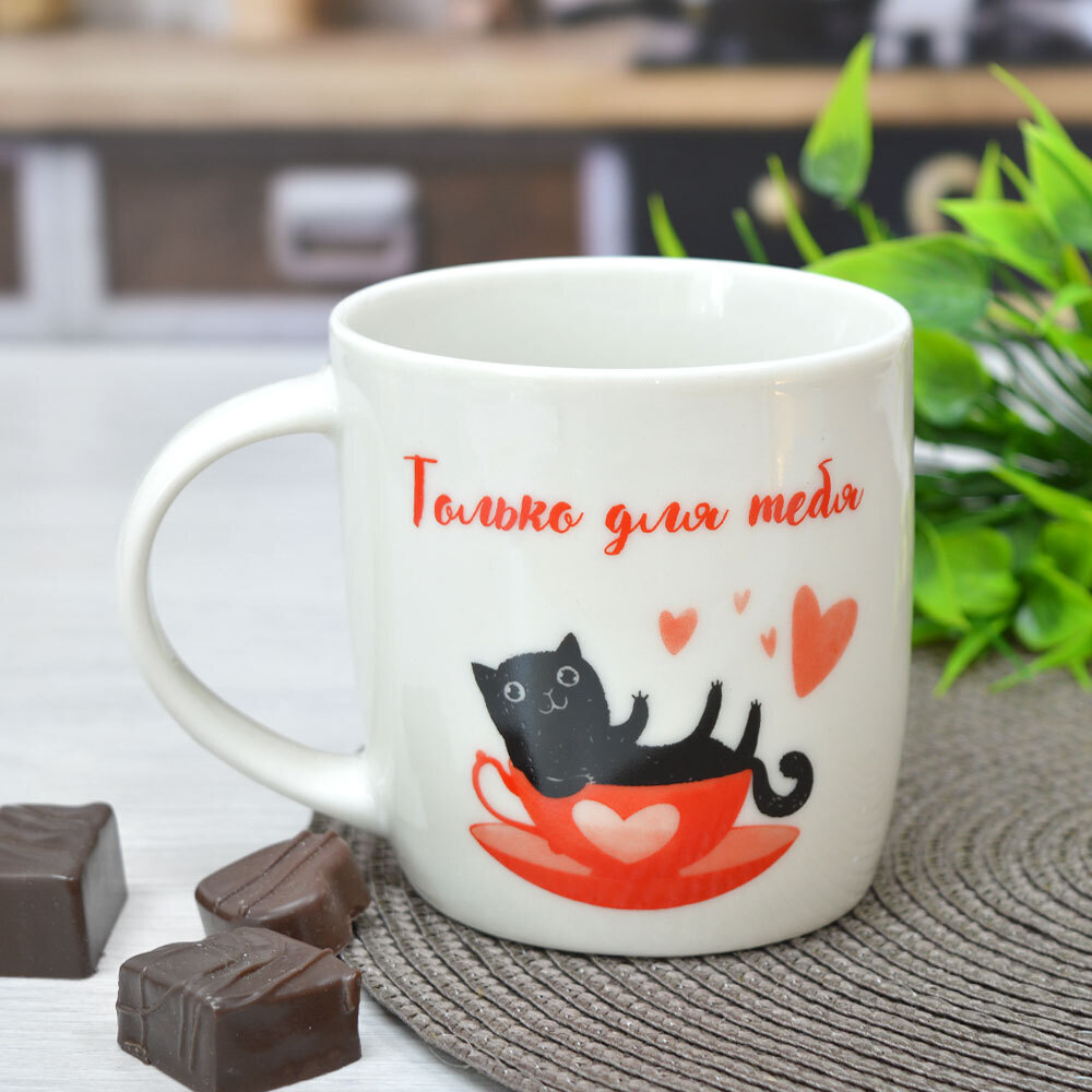 Кружка фарфоровая «Валентинка» 350 мл, с рисунком кошки и надписью «Только для тебя»