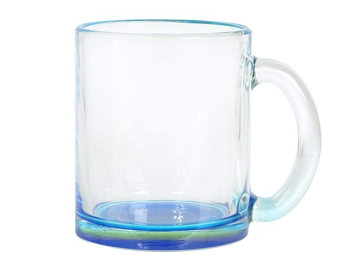 Благодаря цилиндрической форме и гладкой поверхности, кружка легко моется и не впитывает запахи. Прозрачное стекло позволяет наслаждаться цветом вашего напитка, а яркие голубые элементы добавляют нотку свежести.