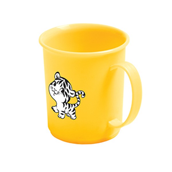 Чёрно-белый рисунок мультяшного тигрёнка нанесён с внешней стороны кружки, что делает его долговечным и устойчивым к стиранию. Однородная внутренняя поверхность жёлтого цвета без дополнительного декора облегчает мытьё и предотвращает скопление бактерий. Цилиндрическая форма с небольшим расширением кверху обеспечивает удобство питья и простоту очистки.
