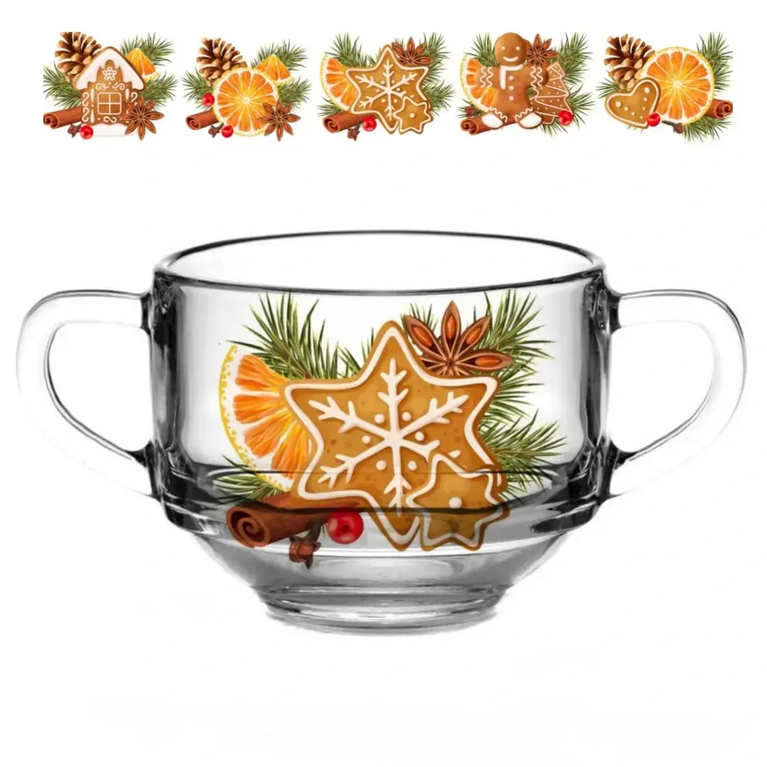 Кружка для бульона 625 мл, стекло, «со вкусом праздника», рисунок в ассортименте, удобная ручка, новогодние цвета