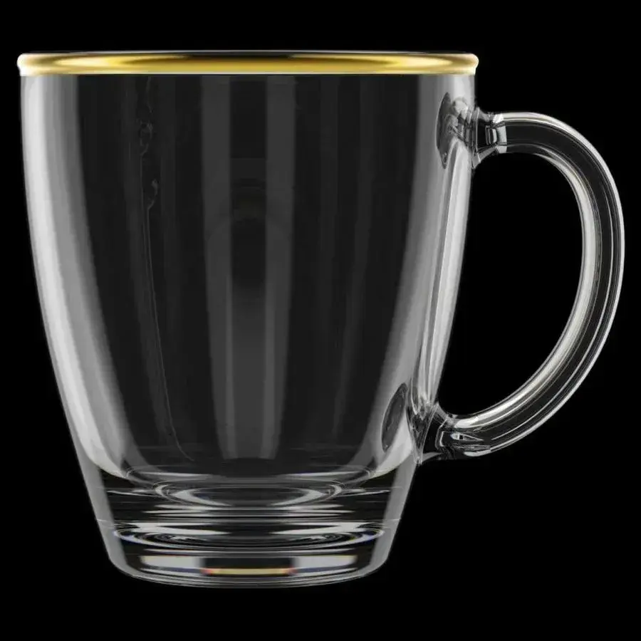 Кружка стеклянная с золотой отделкой для чая 350 мл, прозрачная, ручка из стекла