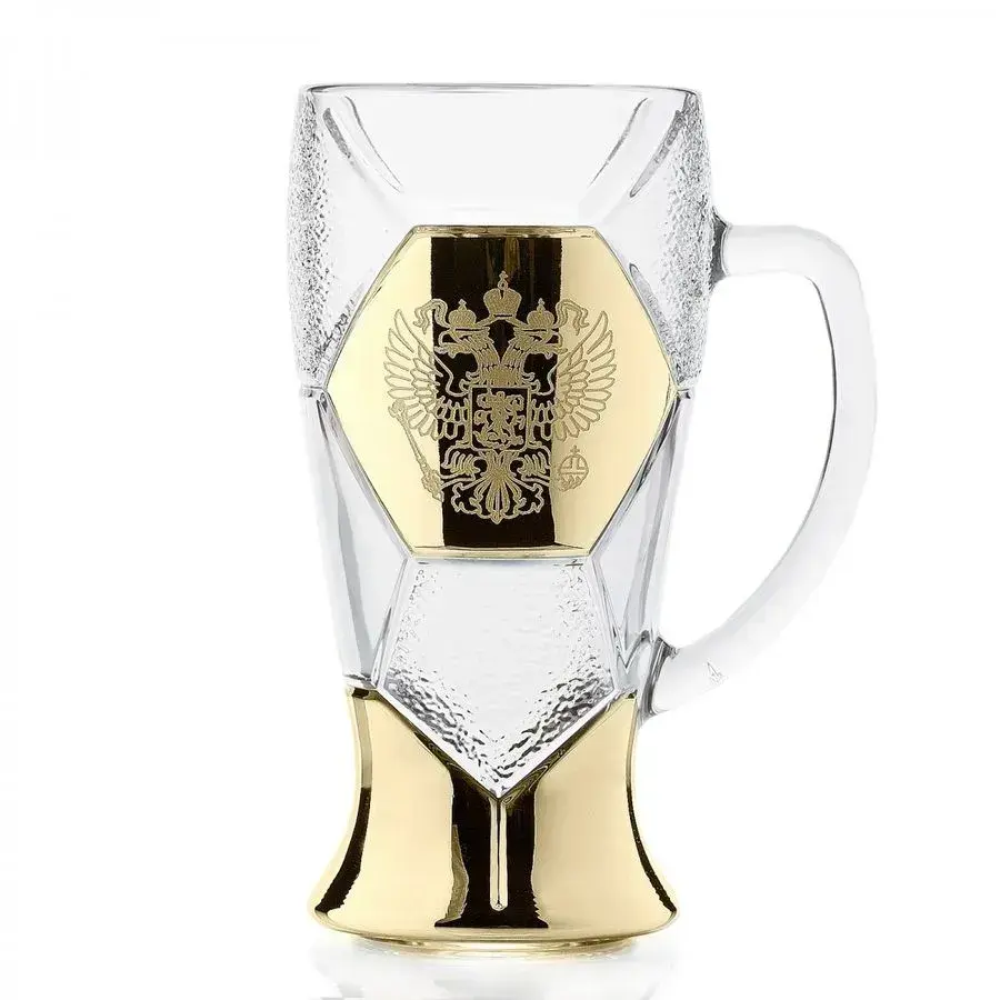 Кружка для пива 500мл, стекло, с гербом двуглавый орел, стильная