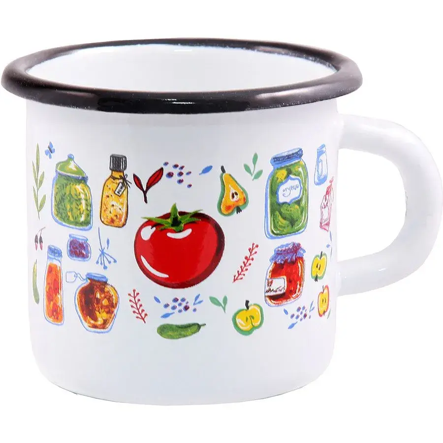 Эмалированная кружка серии 'Marinades' сочетает практичность и оригинальный дизайн. Идеально подходит для любителей горячих напитков и ценителей кухонной эстетики. Объем 400 мл оптимален для утреннего кофе или ароматного чая.