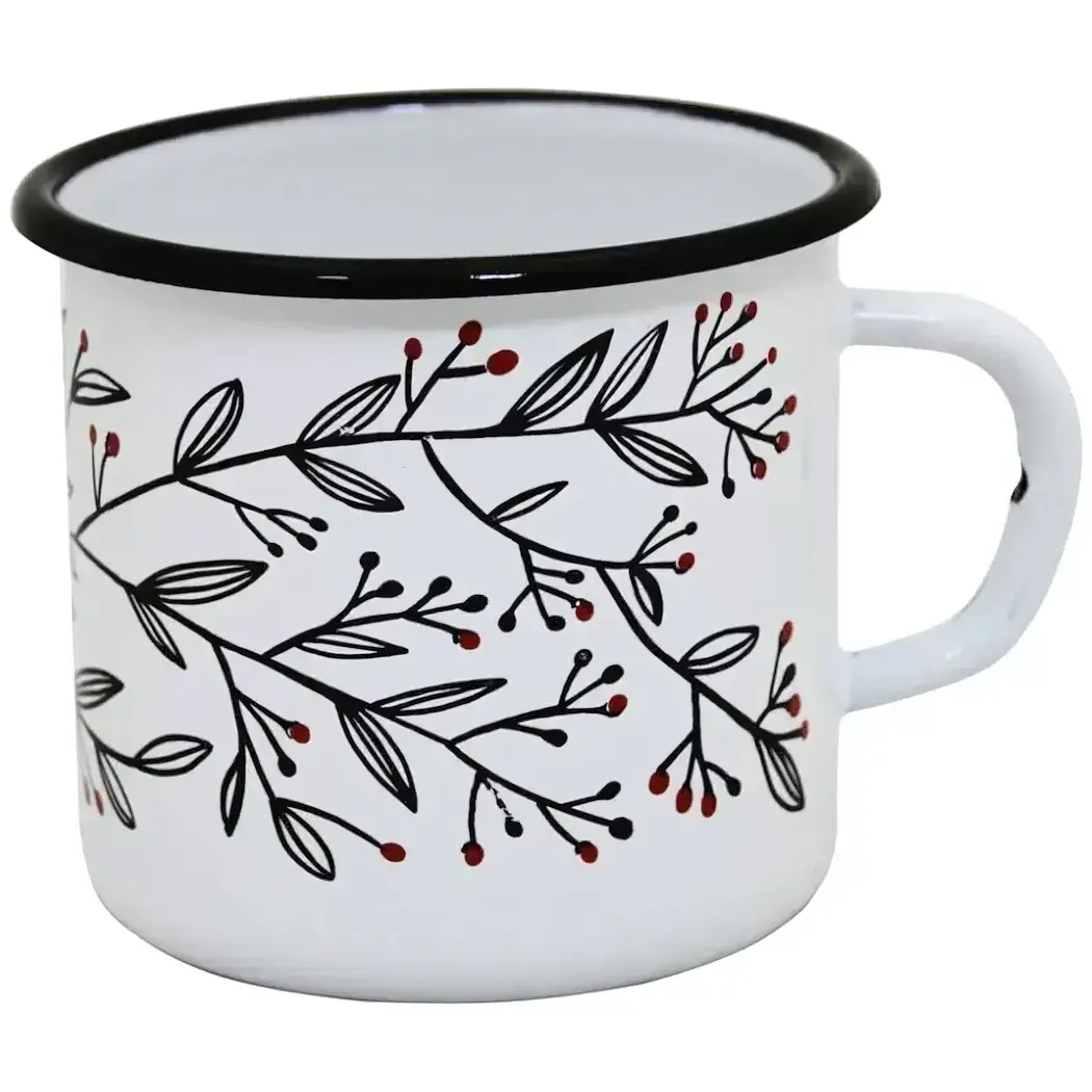Эта стильная эмалированная кружка создана для тех, кто ценит красоту и комфорт в повседневной жизни. Её изысканный дизайн с рисунком веток, листьев и ягод станет ярким акцентом на вашей кухне.