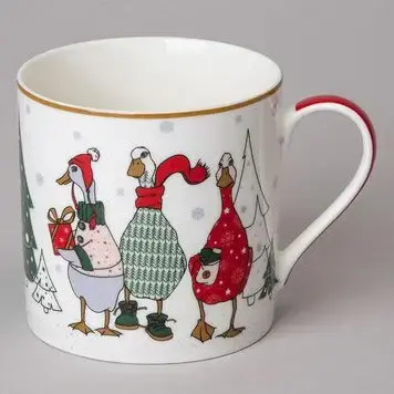 Эта фарфоровая кружка объемом 425 мл создана, чтобы подарить уют и атмосферу зимних праздников. Яркий рисунок с гусями в теплой одежде, елками и снежным фоном поднимает настроение и вызывает улыбку при каждом использовании. Золотистая окантовка по верхнему краю добавляет изысканности, а сочетание белого фона и красных акцентов делает кружку эффектным элементом сервировки.