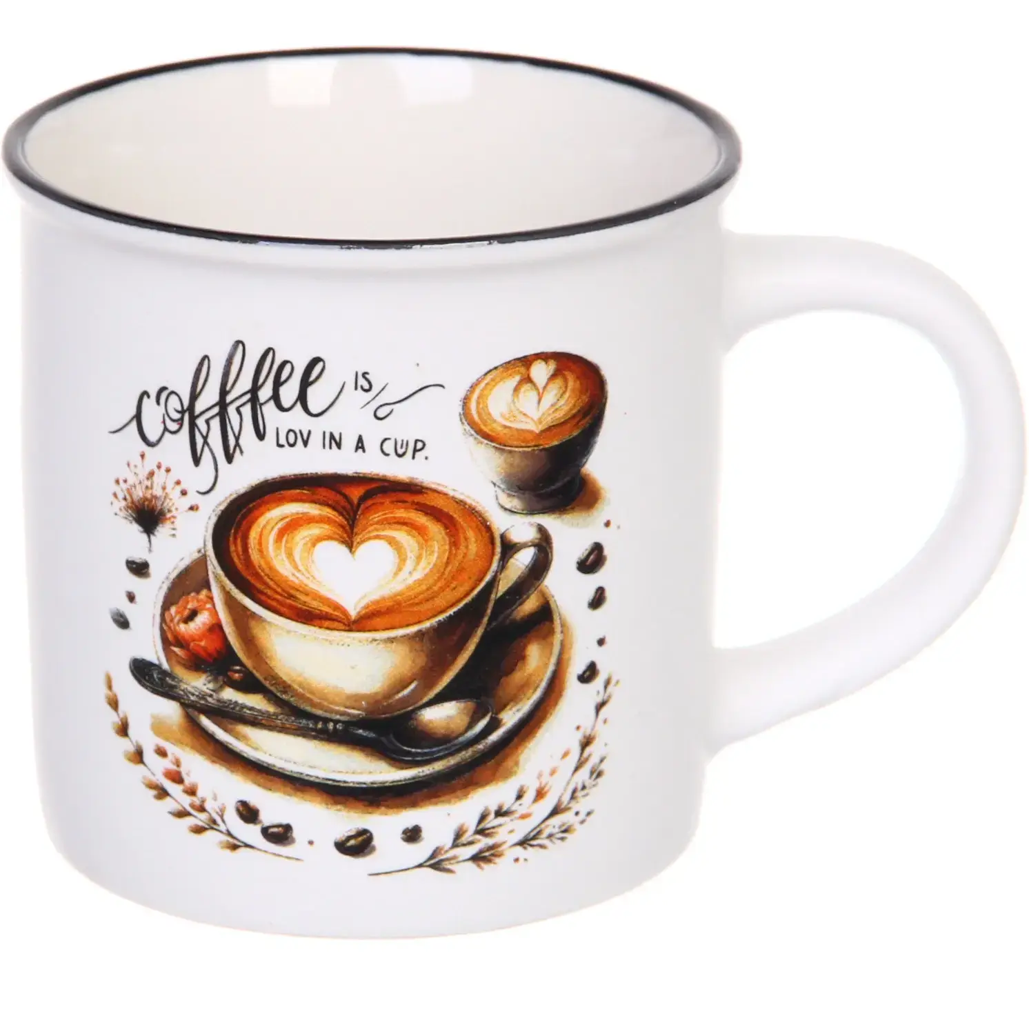 Кружка керамическая для кофе, объем 210 мл, 1 штука, микс дизайнов, белые с черной обводкой