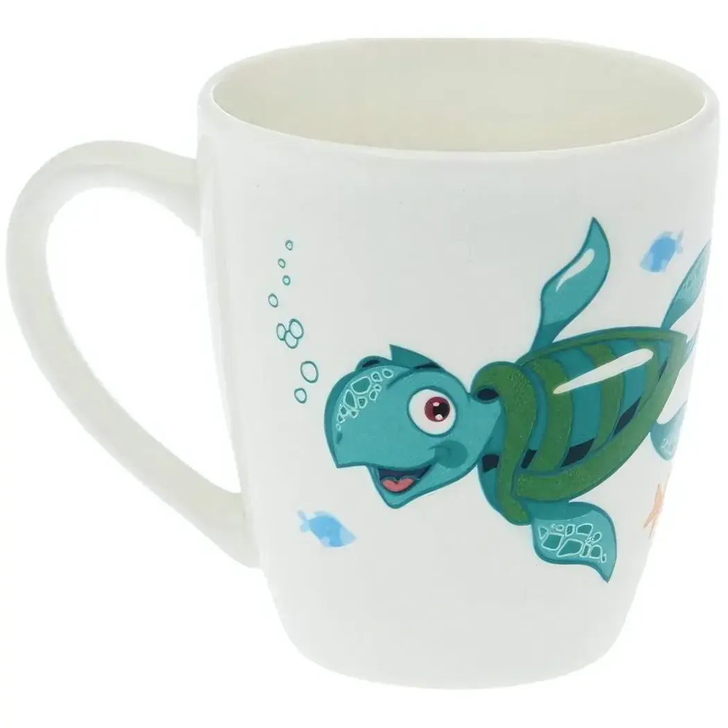 Эта керамическая кружка объемом 260 мл станет вашим верным спутником в утреннем кофе или вечернем чаепитии. С ярким дизайном, изображающим морскую черепаху и маленьких рыбок, она добавит нотку радости и уюта в ваш день. Благодаря гладкой поверхности и округлой форме, кружка удобно лежит в руке, а ее белый цвет с яркими акцентами делает ее стильным элементом вашей кухонной посуды.