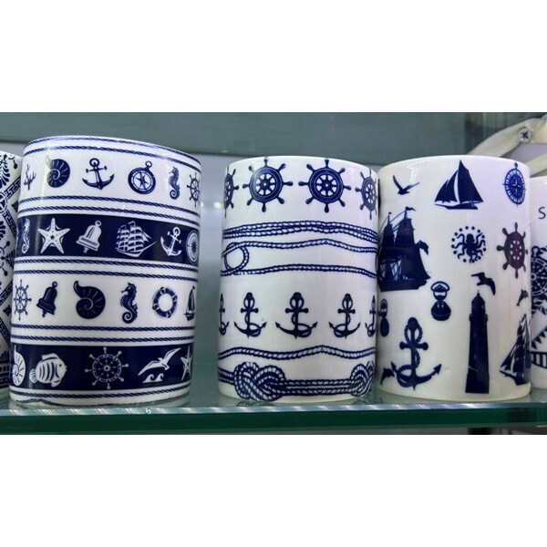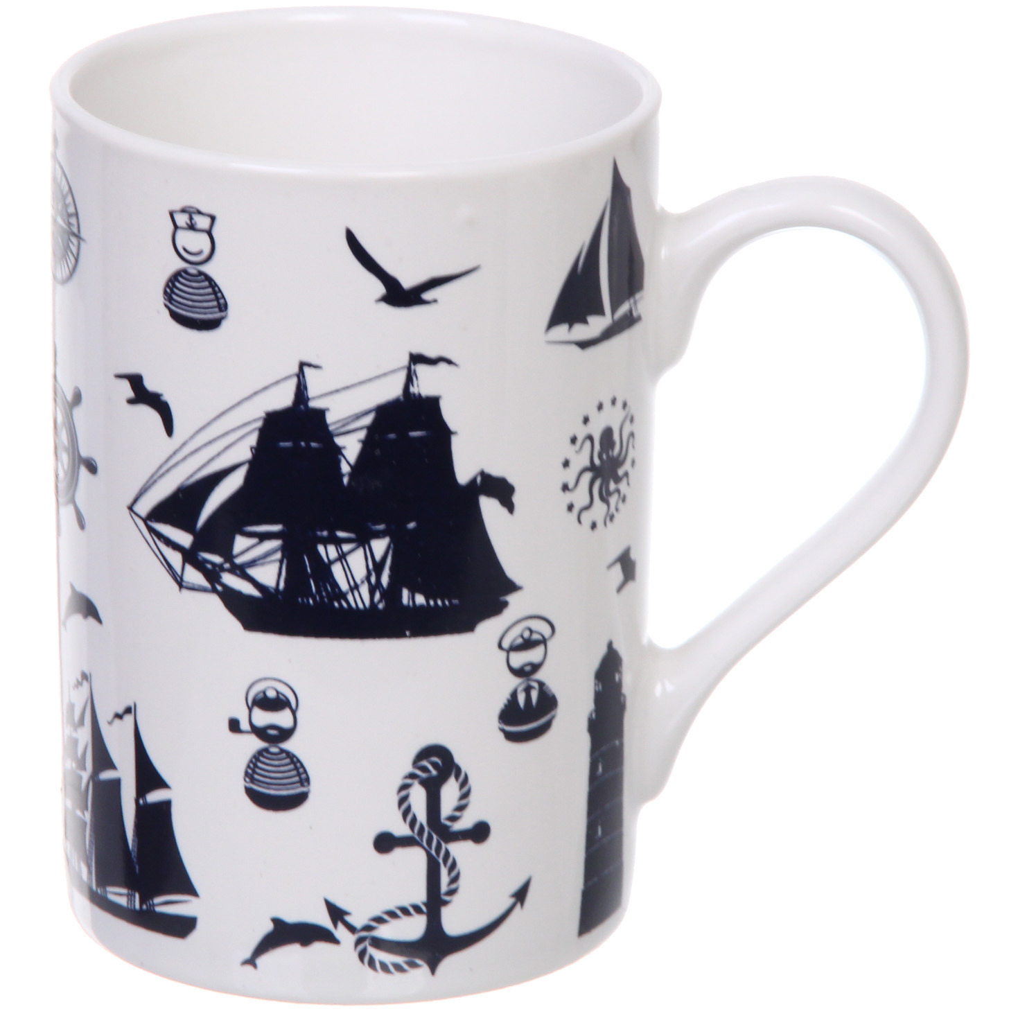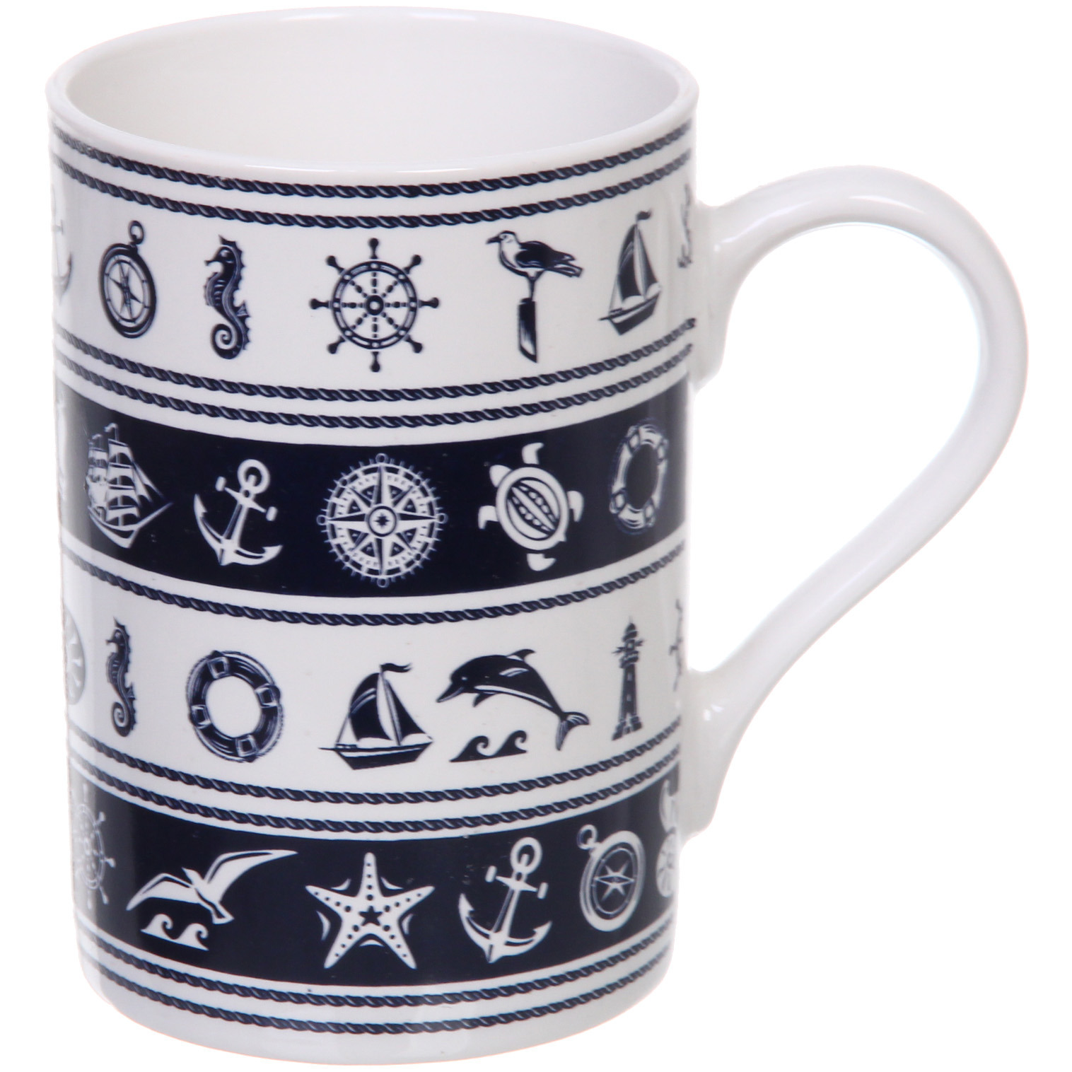 Кружка выполнена из керамики, что делает ее устойчивой к высоким температурам и легкой в уходе. Размеры кружки стандартные, что позволяет использовать ее в любых условиях. Дизайн кружки включает изображения якорей, кораблей и других морских символов, что делает ее идеальной для тематической сервировки или как элемент декора на кухне.