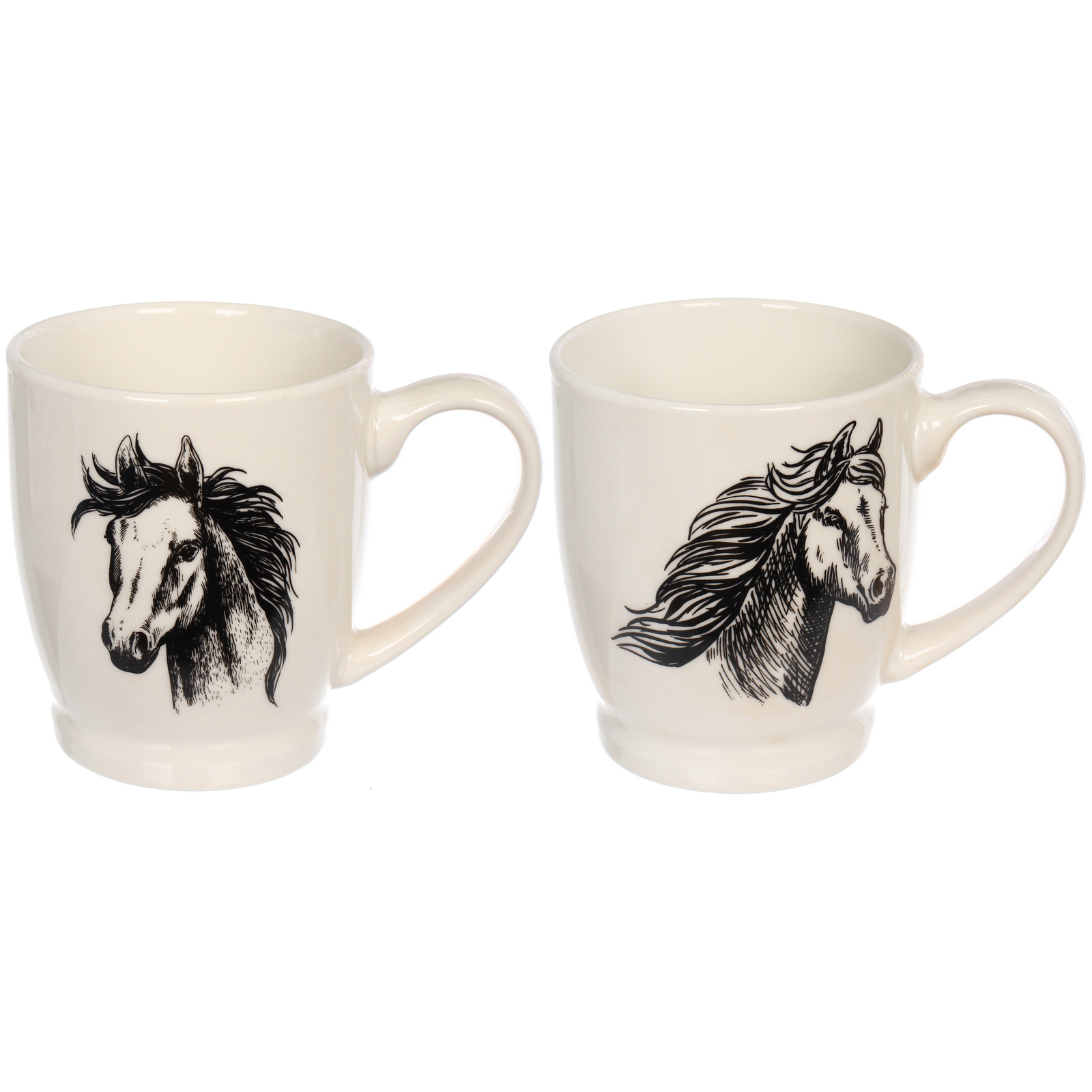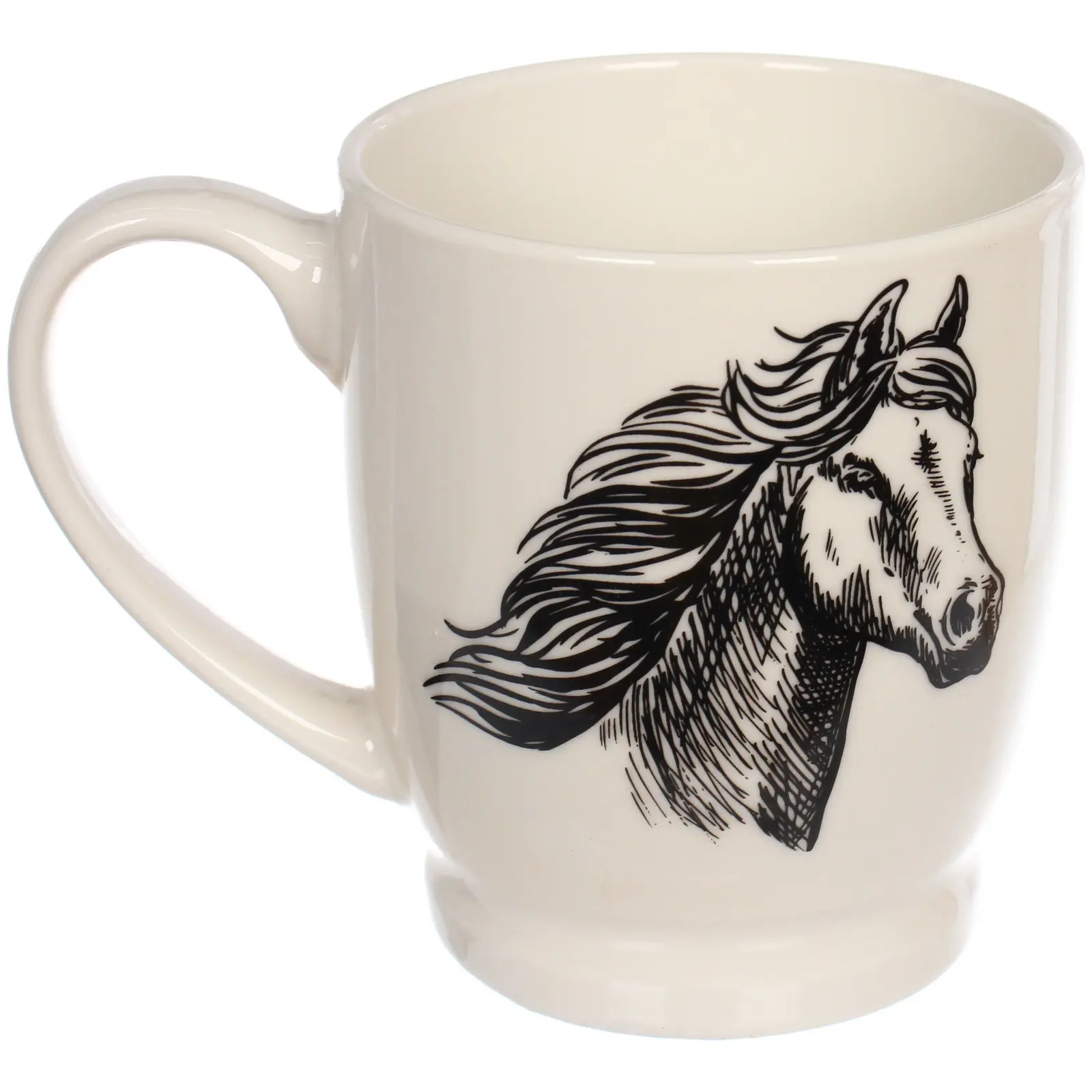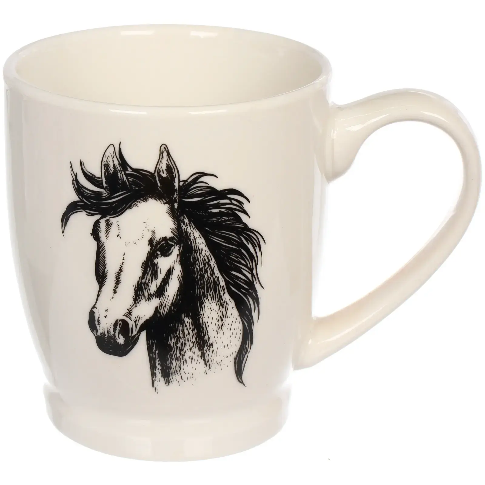 Эта стильная кружка объемом 320 мл станет вашим любимым аксессуаром для кофе или чая. Каждое утро начинается с особого настроения, которое создает изысканный дизайн в виде графических иллюстраций благородных лошадей.
