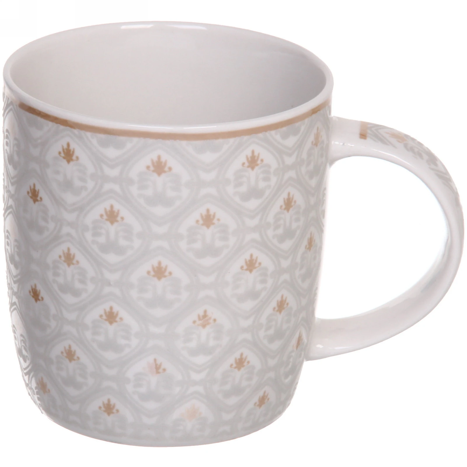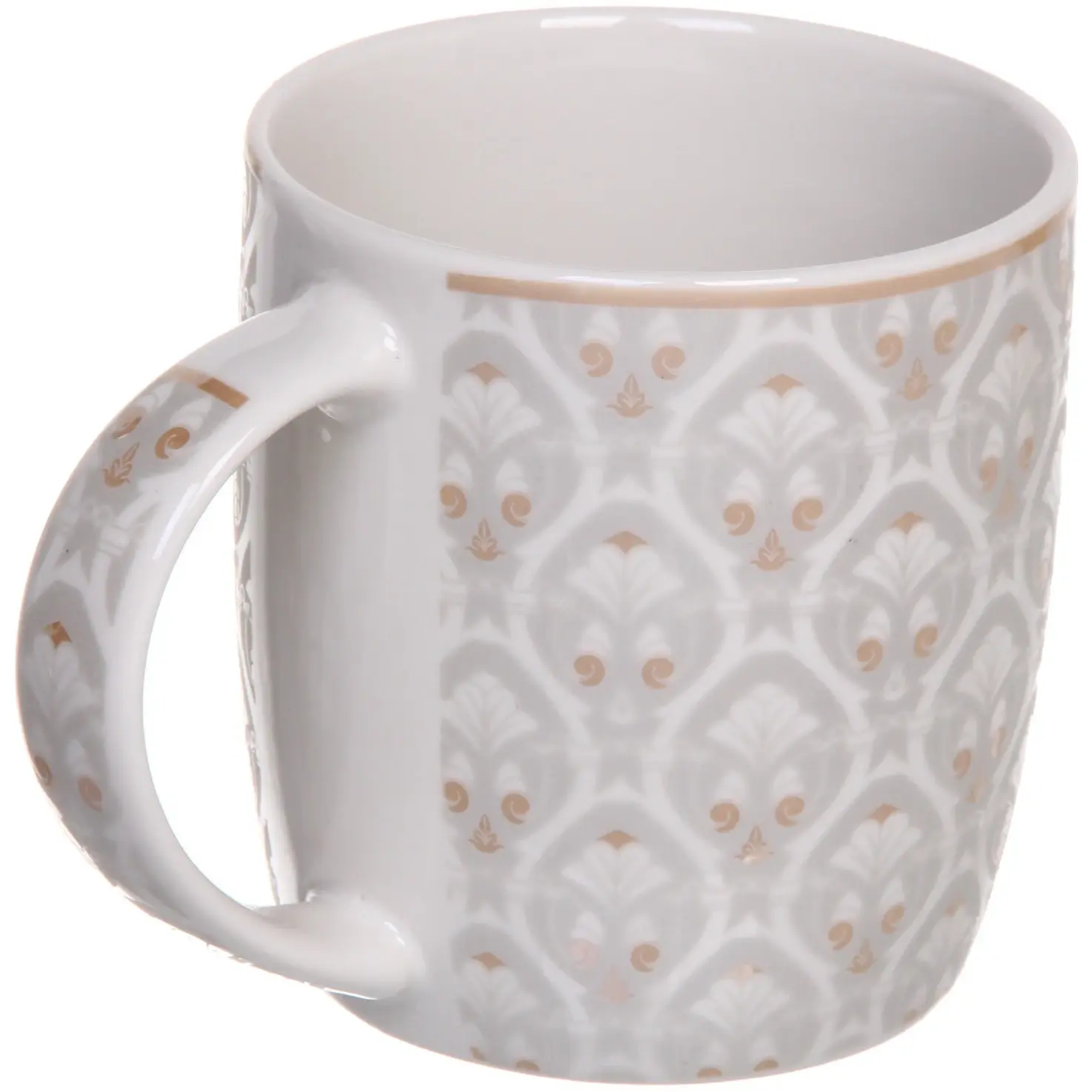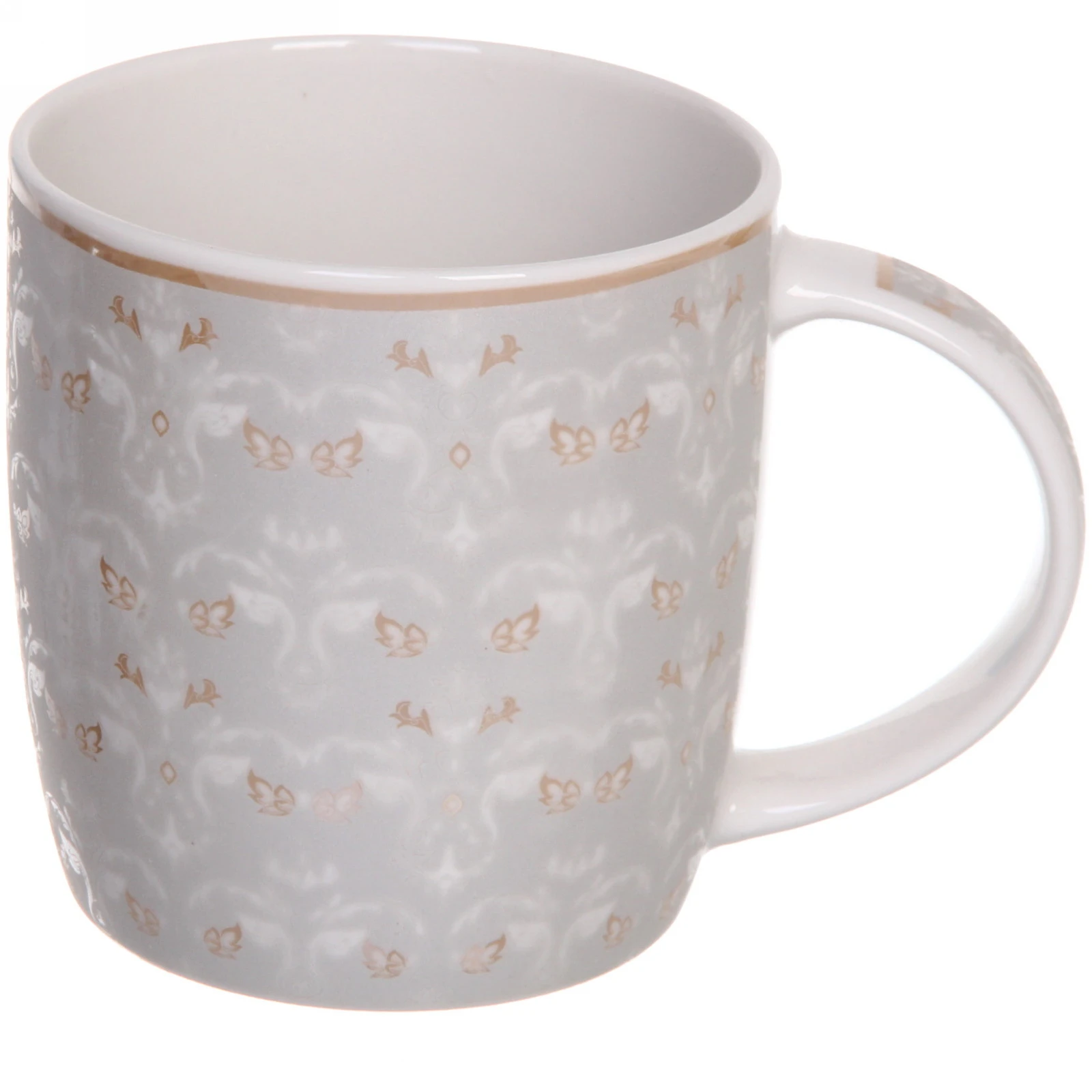 Кружка подходит для горячих и холодных напитков, совместима с посудомоечной машиной и микроволновой печью. Устойчивое дно предотвращает случайное опрокидывание. Дизайн в сдержанных бело-золотых тонах органично впишется в любой интерьер кухни.