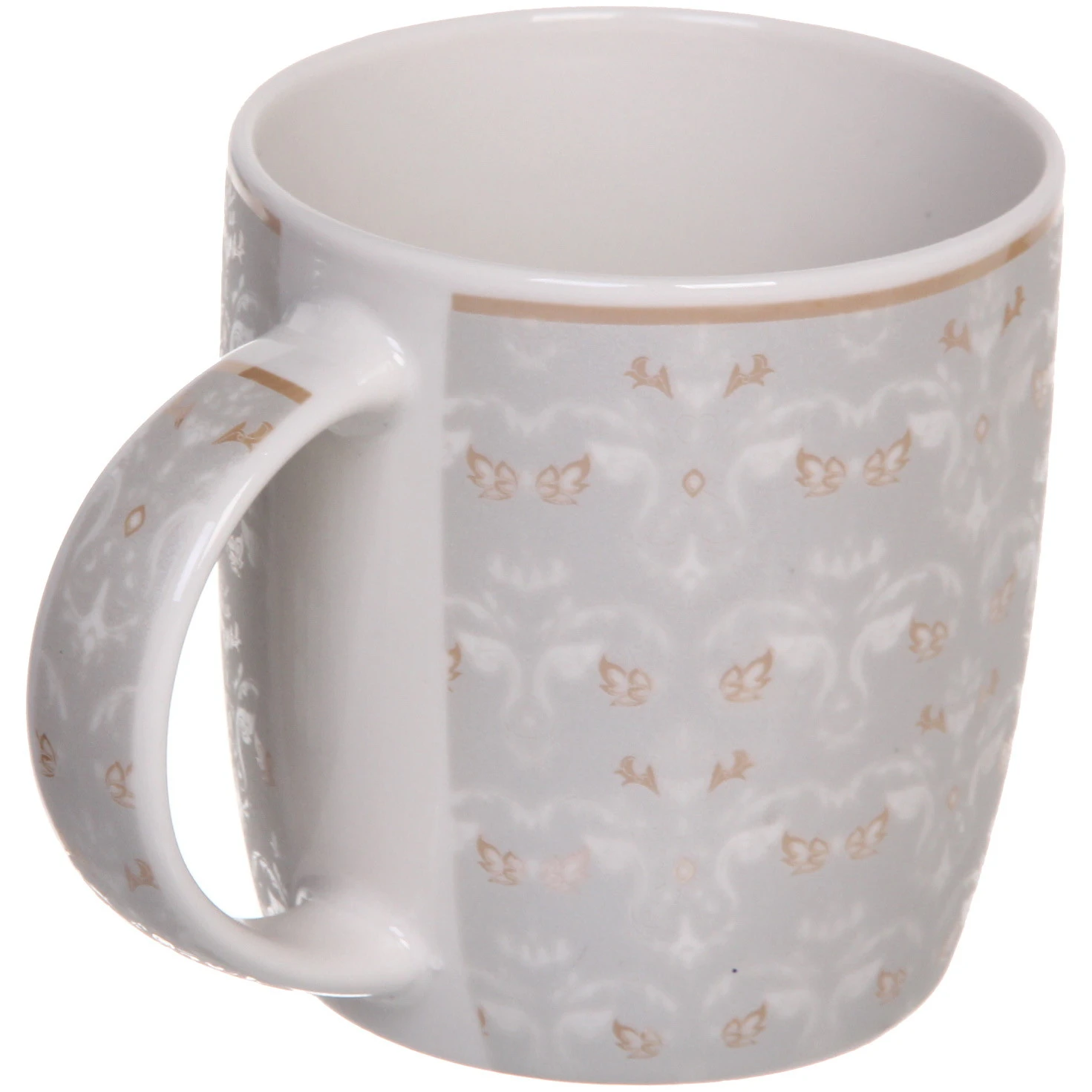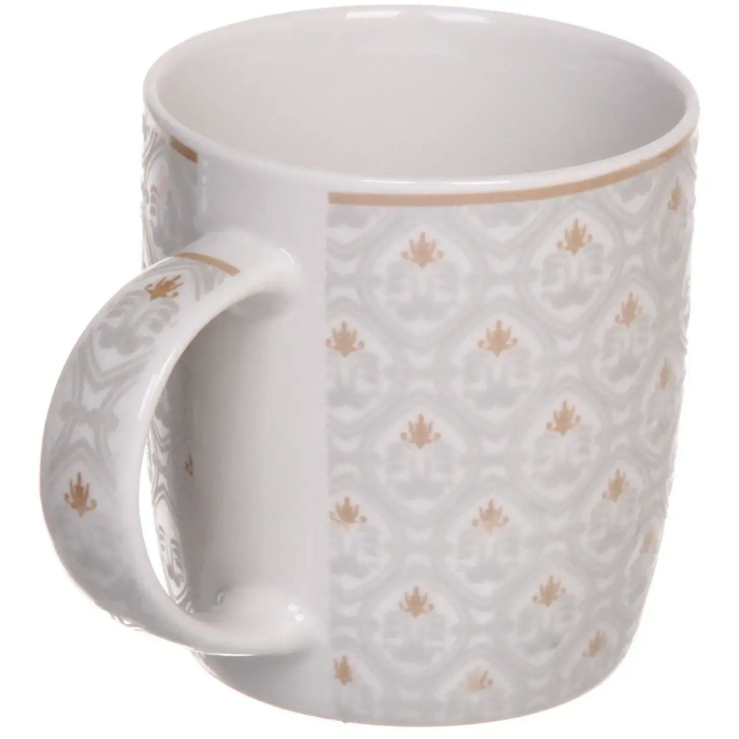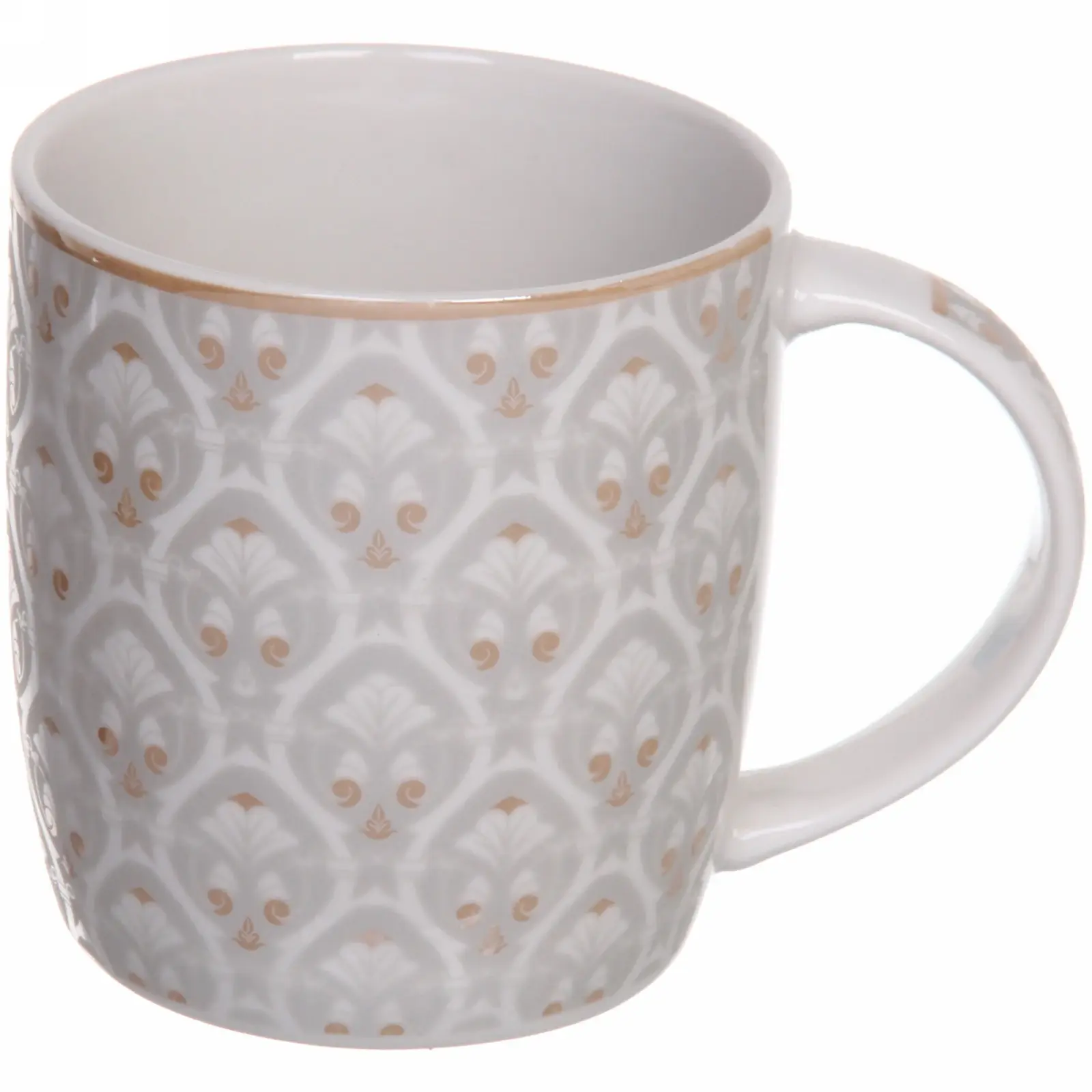 Кружка подходит для горячих и холодных напитков, совместима с посудомоечной машиной и микроволновой печью. Устойчивое дно предотвращает случайное опрокидывание. Дизайн в сдержанных бело-золотых тонах органично впишется в любой интерьер кухни.