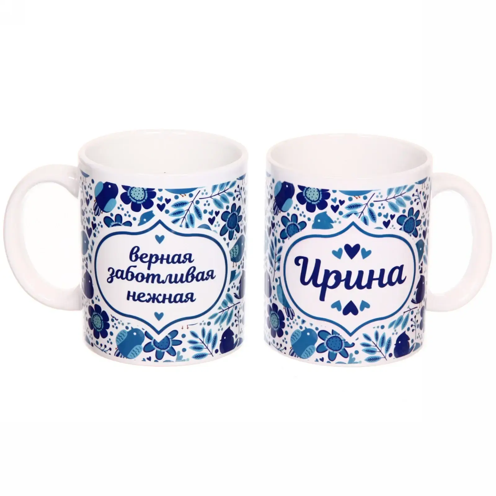 Кружка керамическая 330мл 'Ирина', цветочный дизайн в синих тонах, материал керамика