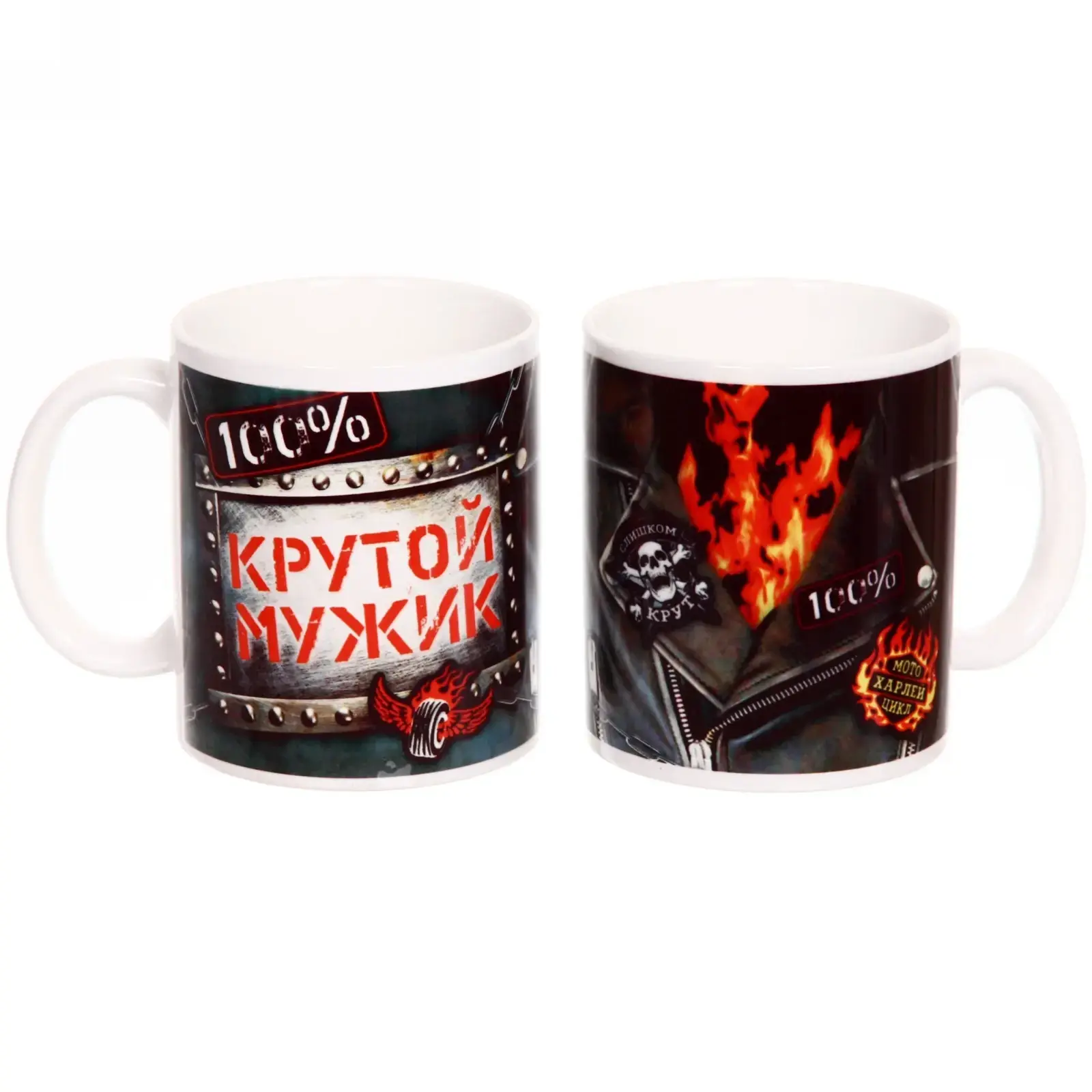 Кружка керамическая 330 мл «Крутой мужик», белая с красным принтом, для горячих напитков