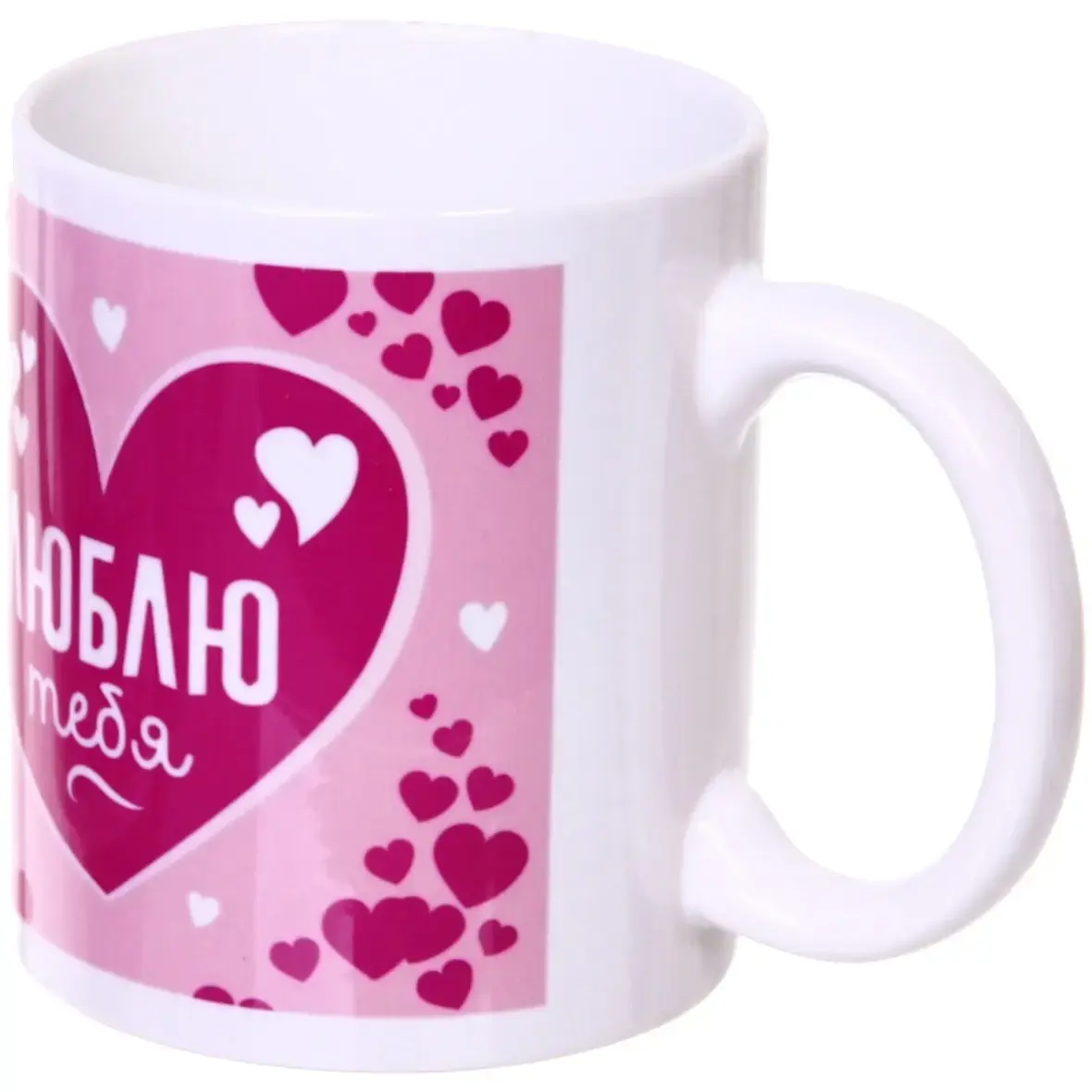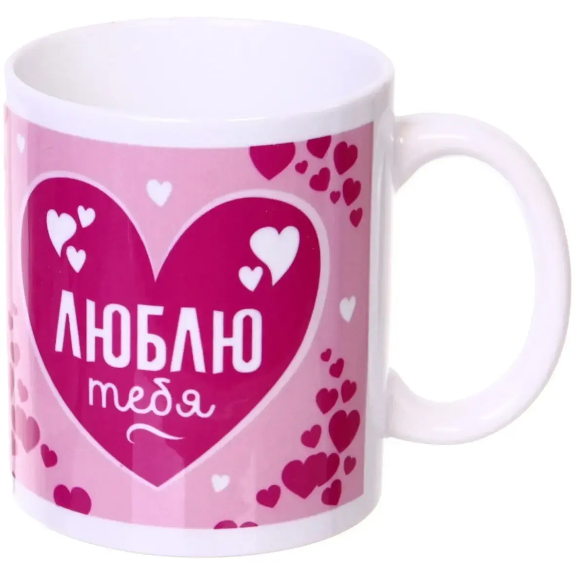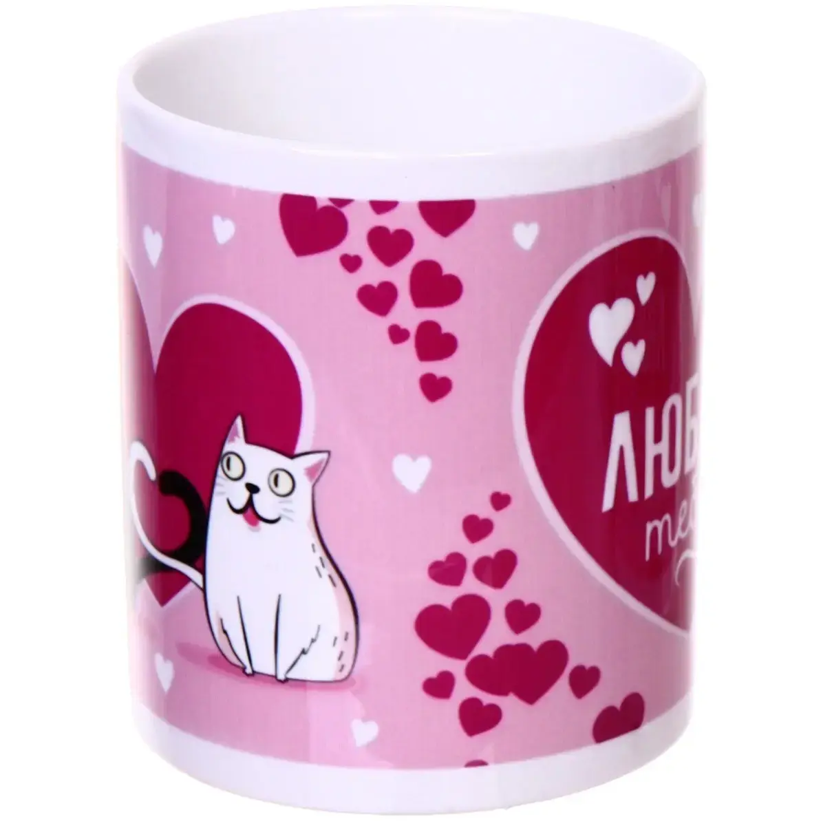 Кружка керамическая 330 мл, "Люблю тебя, Котики", белая/розовая