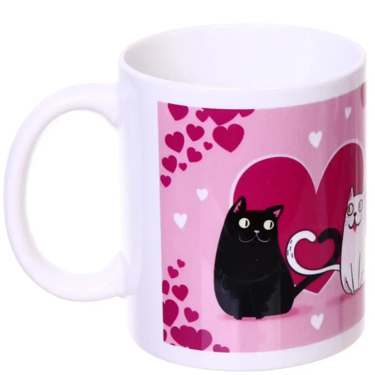 Кружка керамическая станет вашим любимым аксессуаром для утреннего кофе или чая. Её дизайн с милыми котиками и романтическими сердечками не только поднимет настроение, но и создаст особую атмосферу уюта.