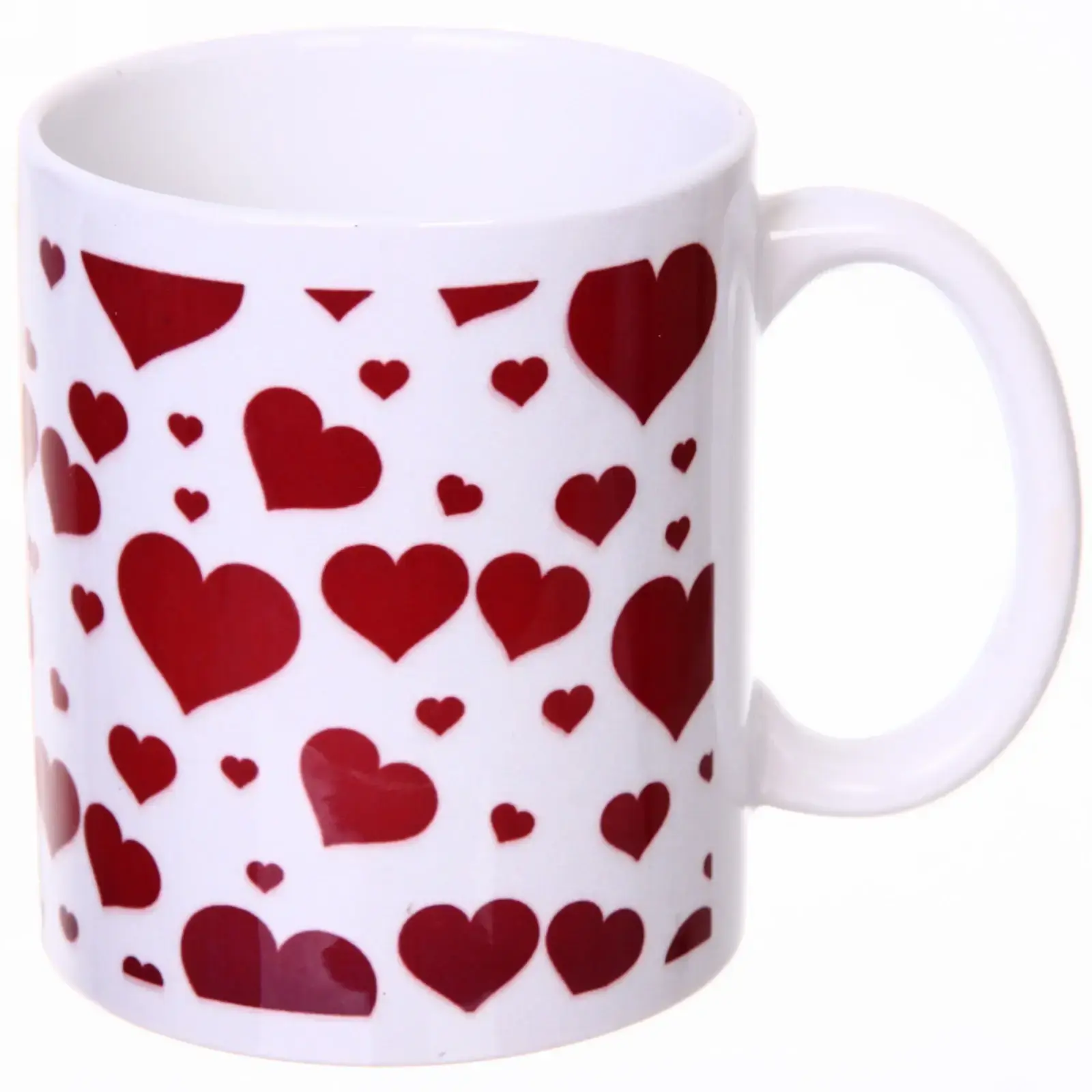 Кружка выполнена из высококачественной керамики, что гарантирует ее долговечность и устойчивость к повреждениям. Белый цвет с яркими красными сердечками делает ее стильной и привлекательной. Размеры кружки стандартные, что позволяет легко сочетать ее с другими предметами кухонной посуды. Эта кружка станет отличным подарком для близких и друзей, подчеркивая ваши чувства и заботу.