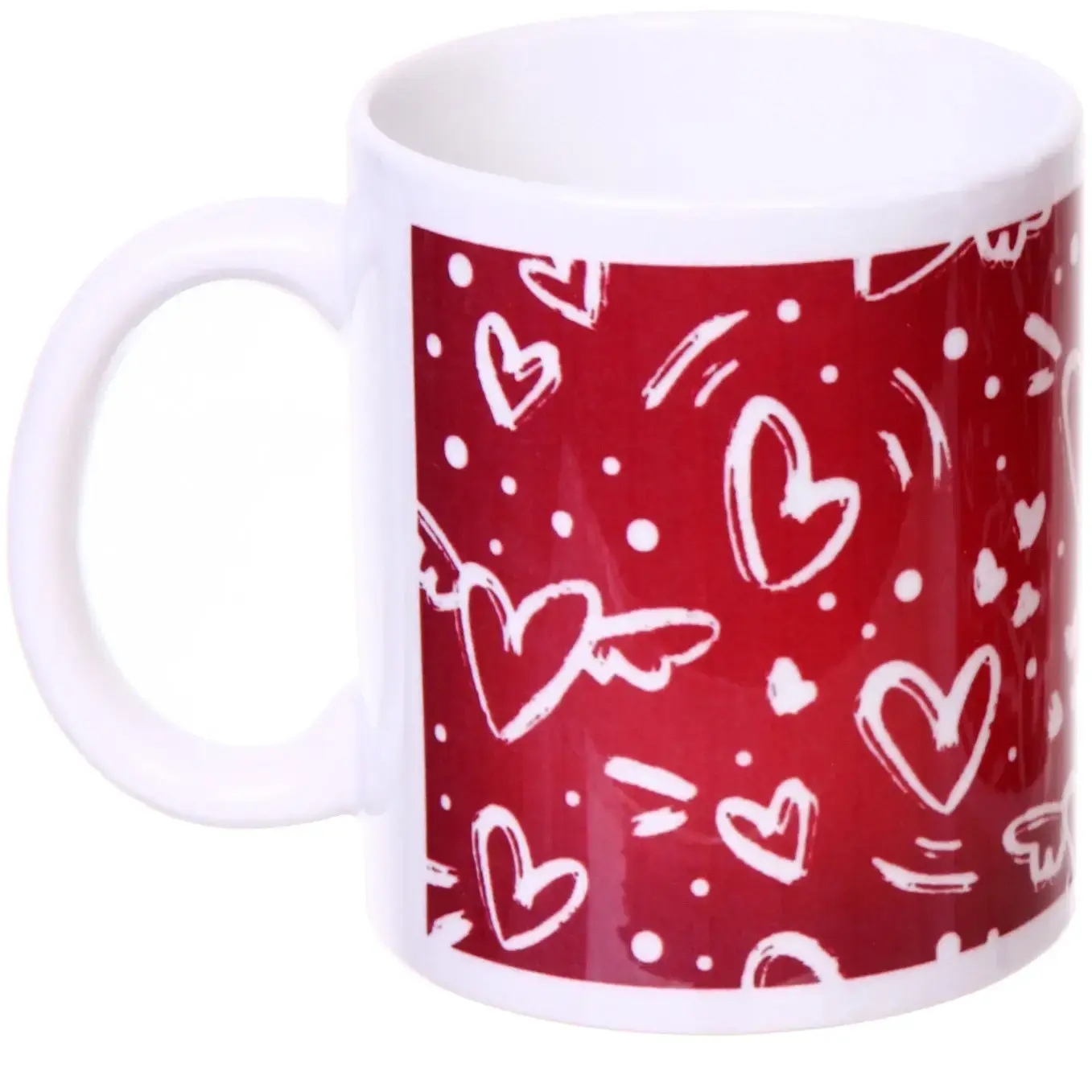 Кружка керамическая с рисунком «Любовь окрыляет», 330 мл, красно-белый дизайн, для горячих напитков