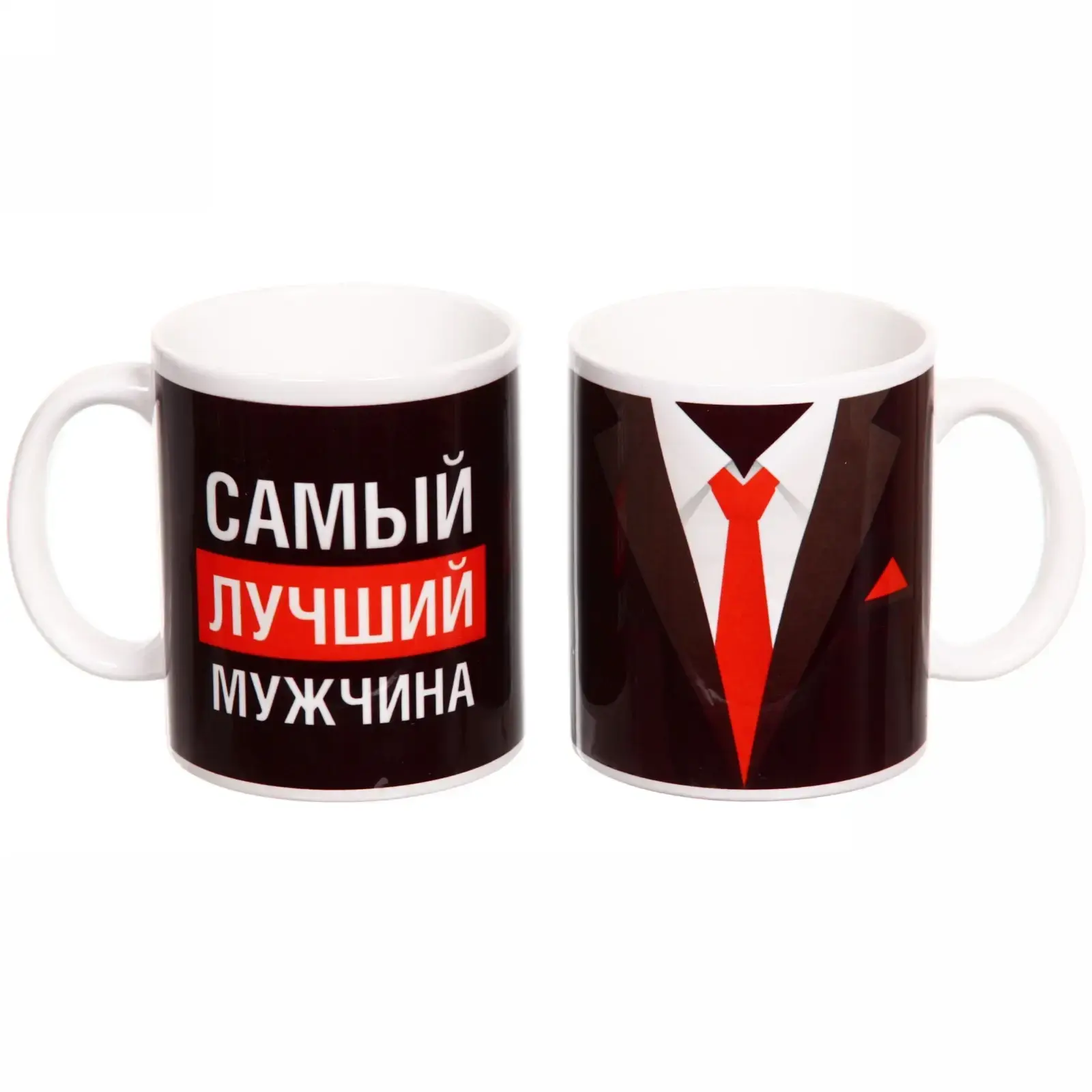 Кружка керамическая «Самый лучший мужчина», 330 мл, черная с красным галстуком, подарок для мужчин