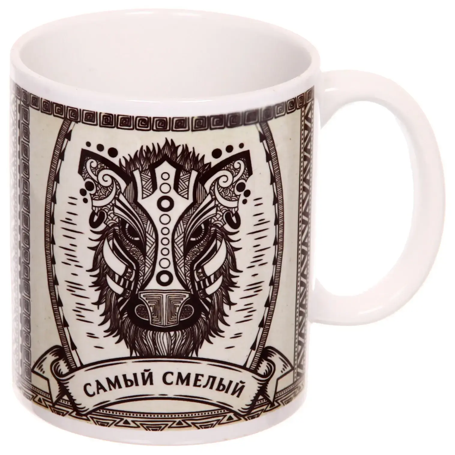 Кружка имеет стандартные размеры, что делает её удобной для использования в любых условиях. Белый цвет и стильный рисунок позволяют сочетать её с различной посудой, а также легко вписываются в любой интерьер. Не упустите возможность добавить в свою жизнь немного уюта и стиля с кружкой «Самый смелый»!