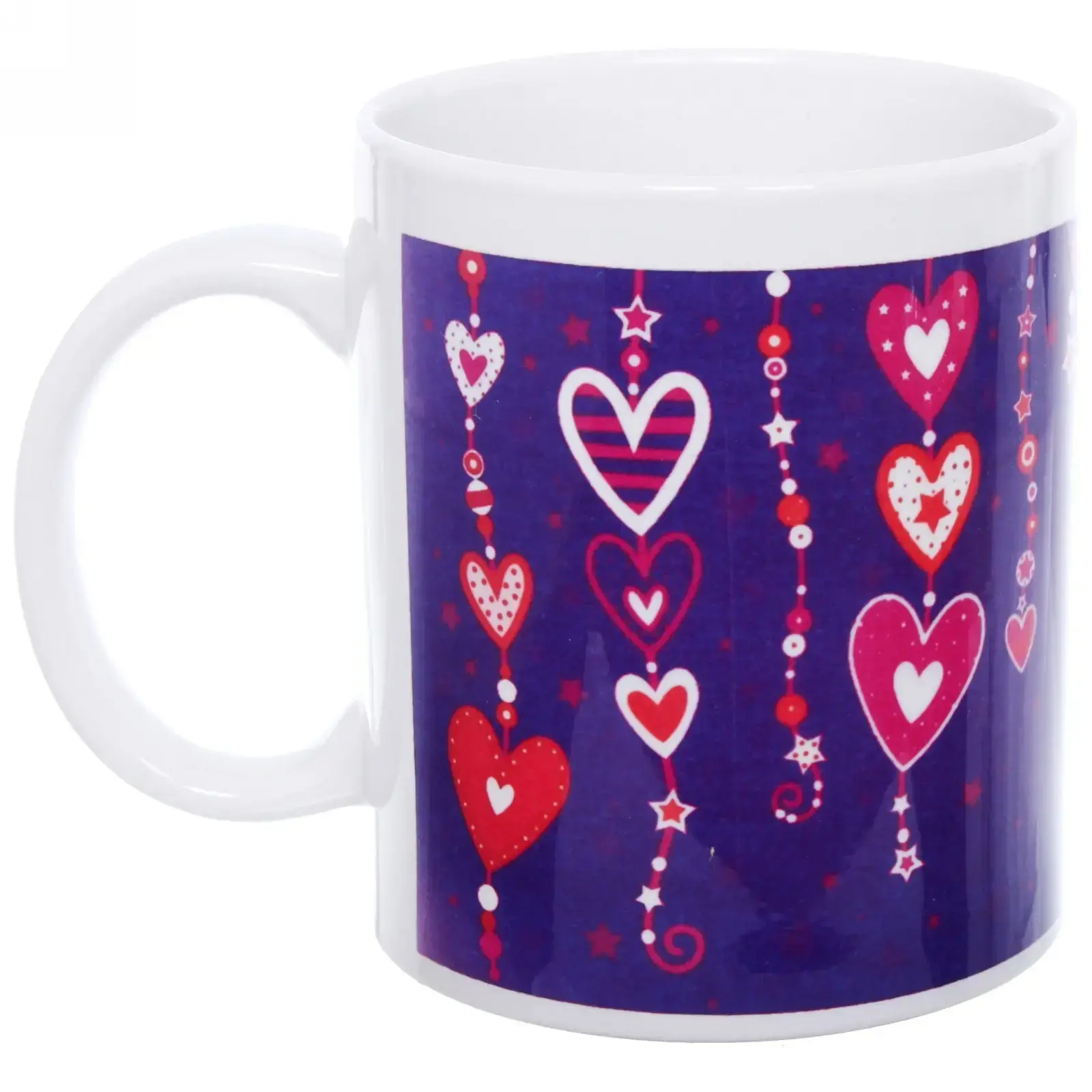 Наслаждайтесь любимыми напитками в стильной кружке, которая сохраняет тепло и создаёт особое настроение. Яркий принт с сердечками станет милым акцентом вашего утра или оригинальным подарком для близкого человека.