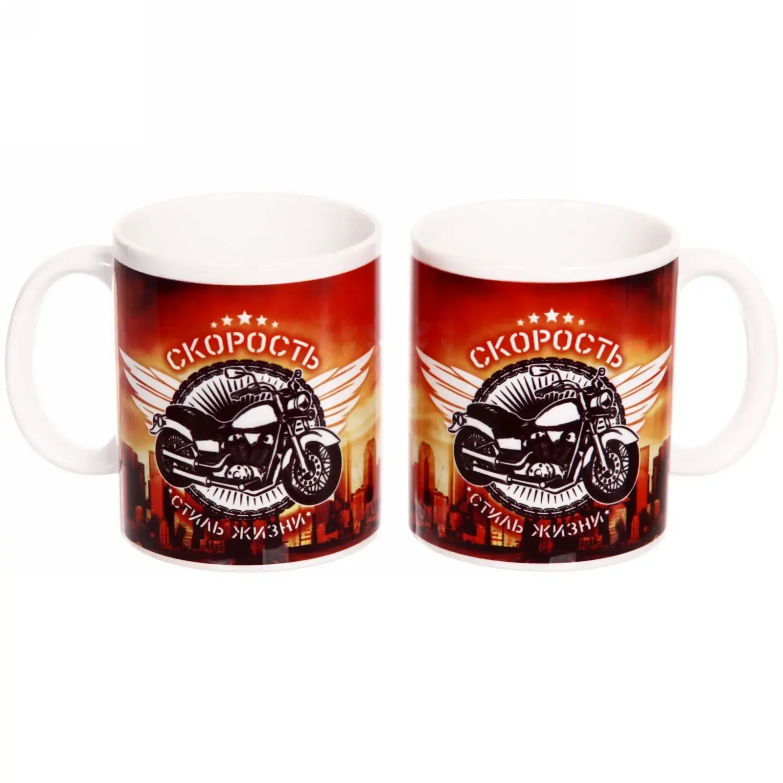Кружка керамическая «Скорость-стиль жизни», 330 мл, принт мотоцикла с городом, белая с красным