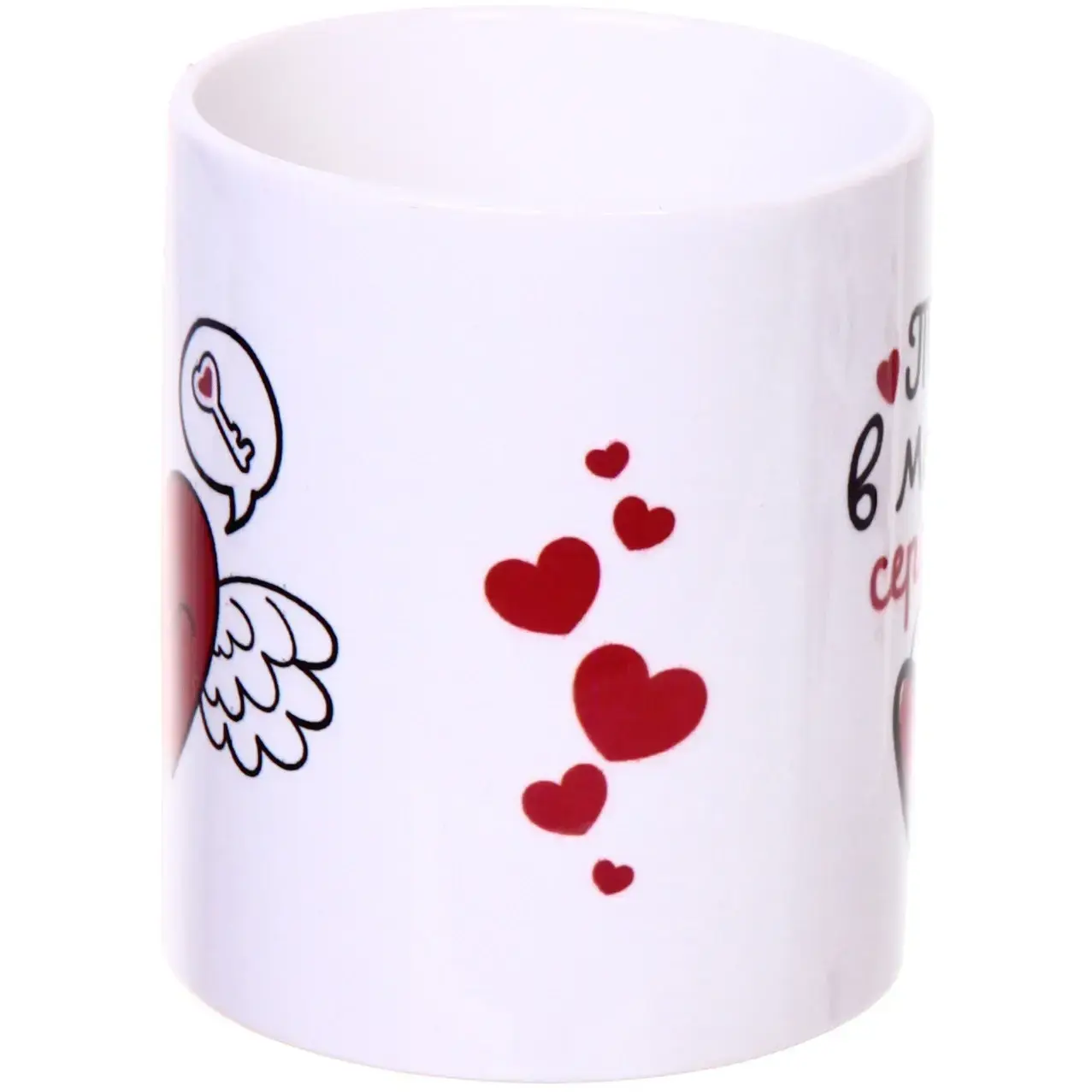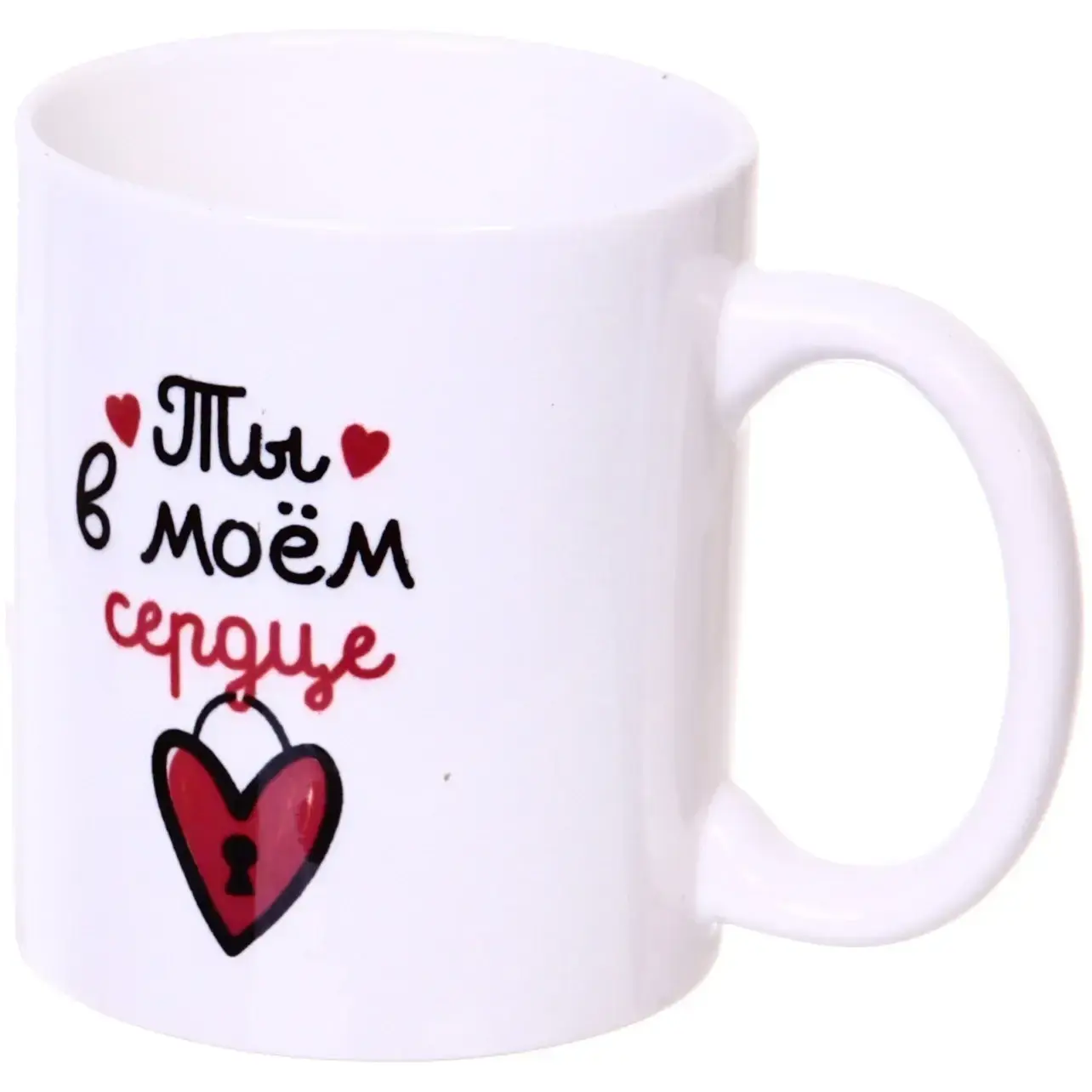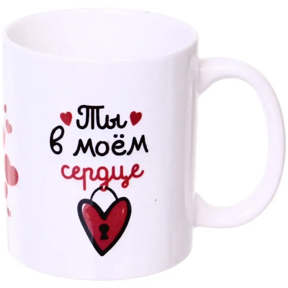Эта керамическая кружка станет идеальным спутником для ваших горячих напитков. С её помощью вы сможете наслаждаться чаем или кофе, не боясь обжечь руки, благодаря тому, что керамика медленно проводит тепло. Яркий и романтичный дизайн с надписью «Ты в моём сердце» и изображениями сердечек делает её отличным подарком для любимого человека.