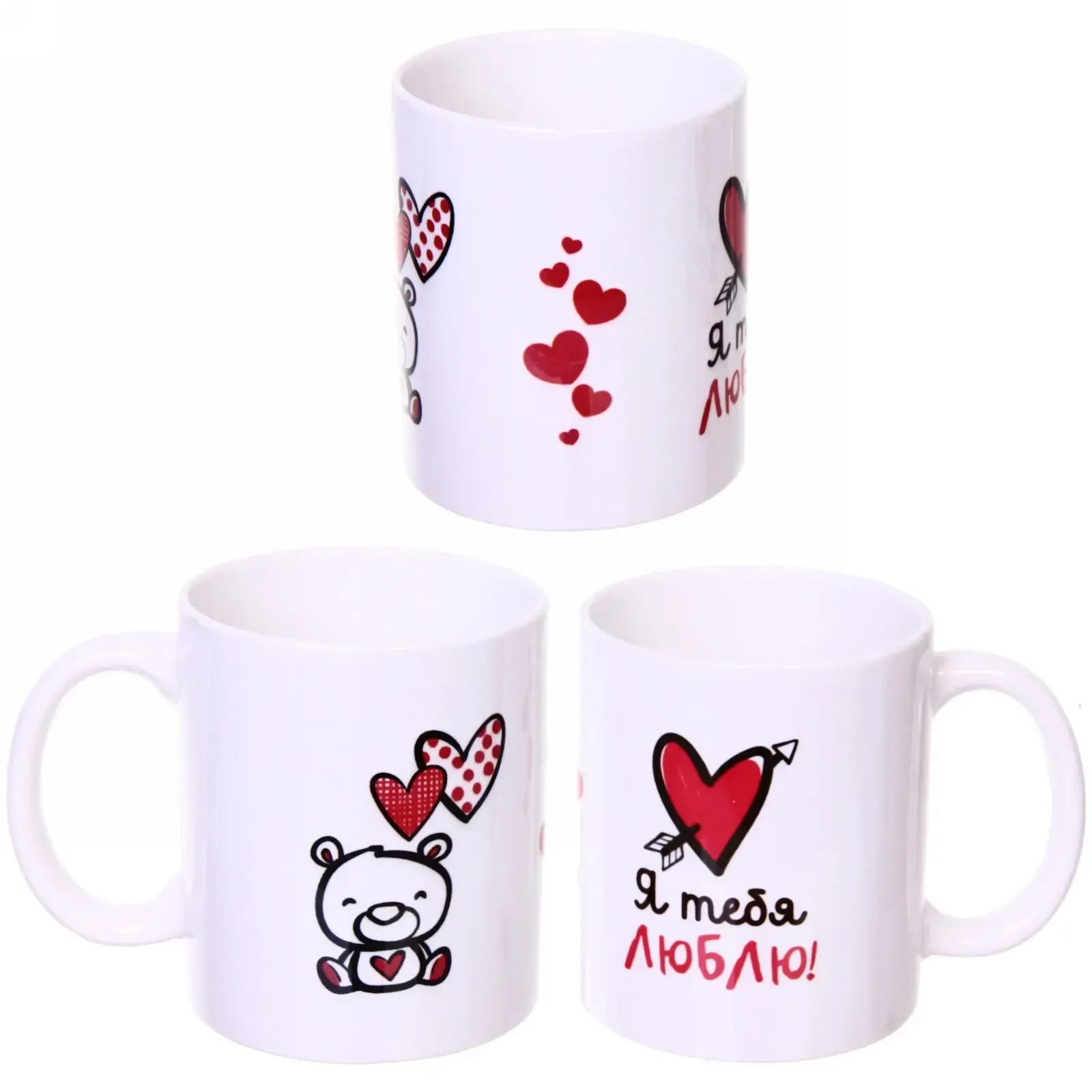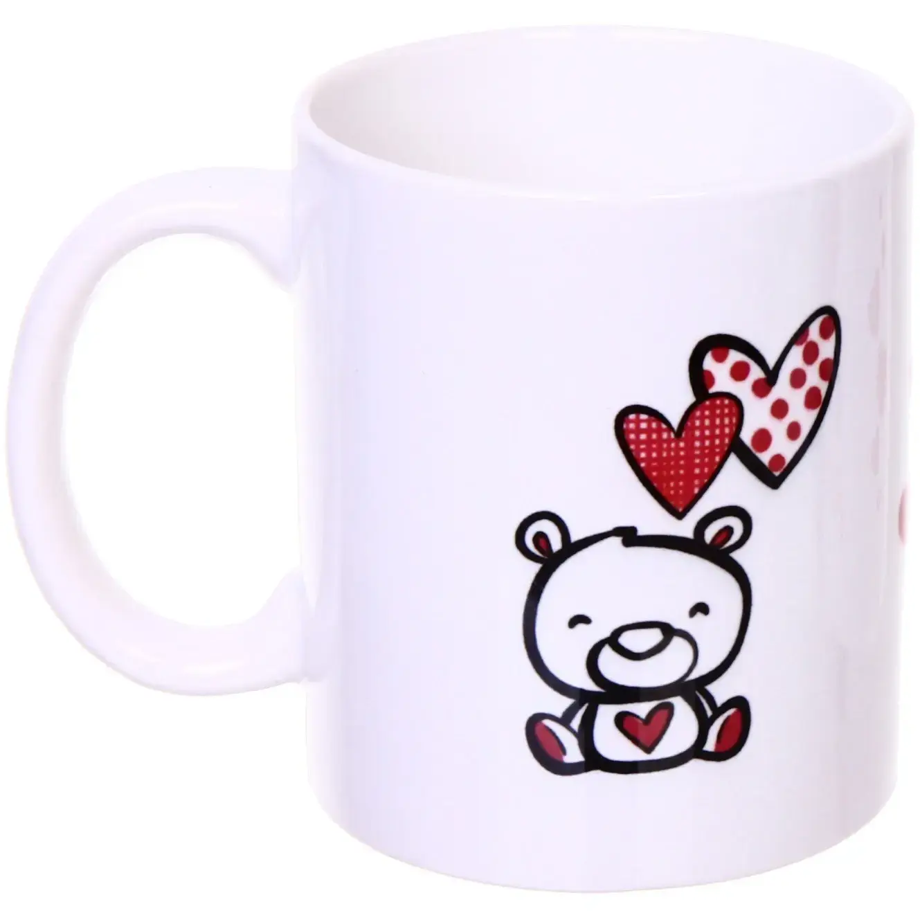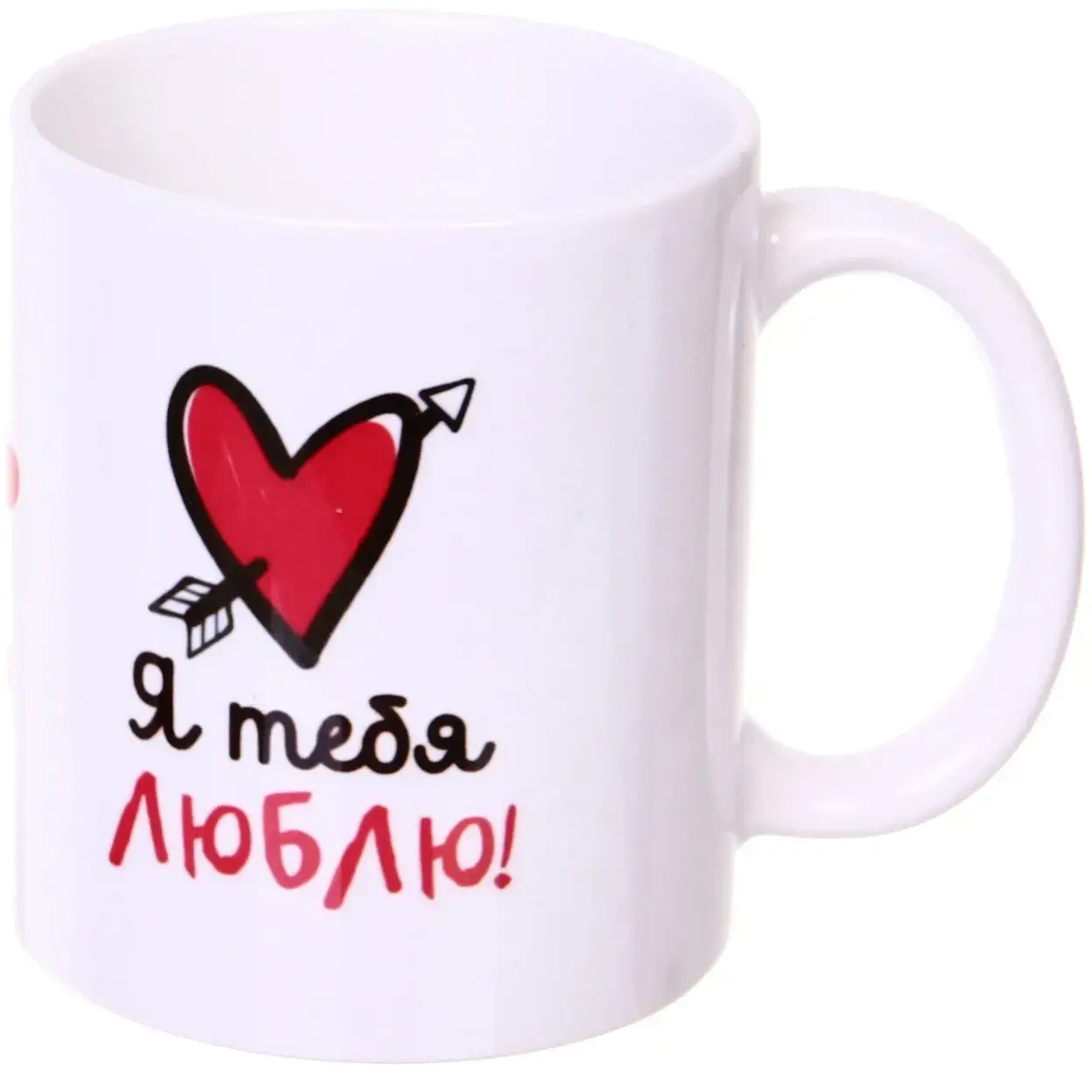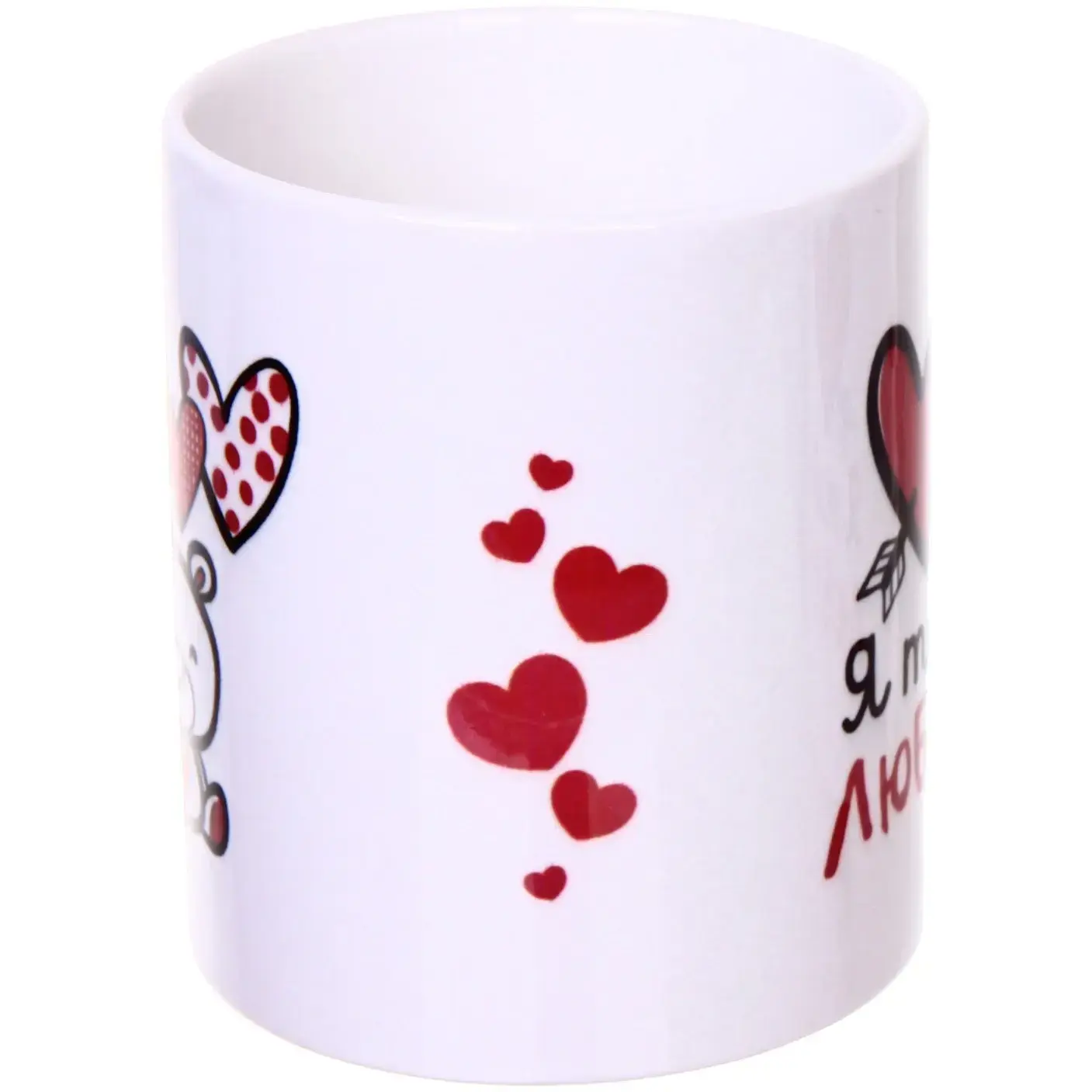 Кружка керамическая «Я тебя люблю», 330 мл, белая, романтический дизайн с сердечками и мишкой