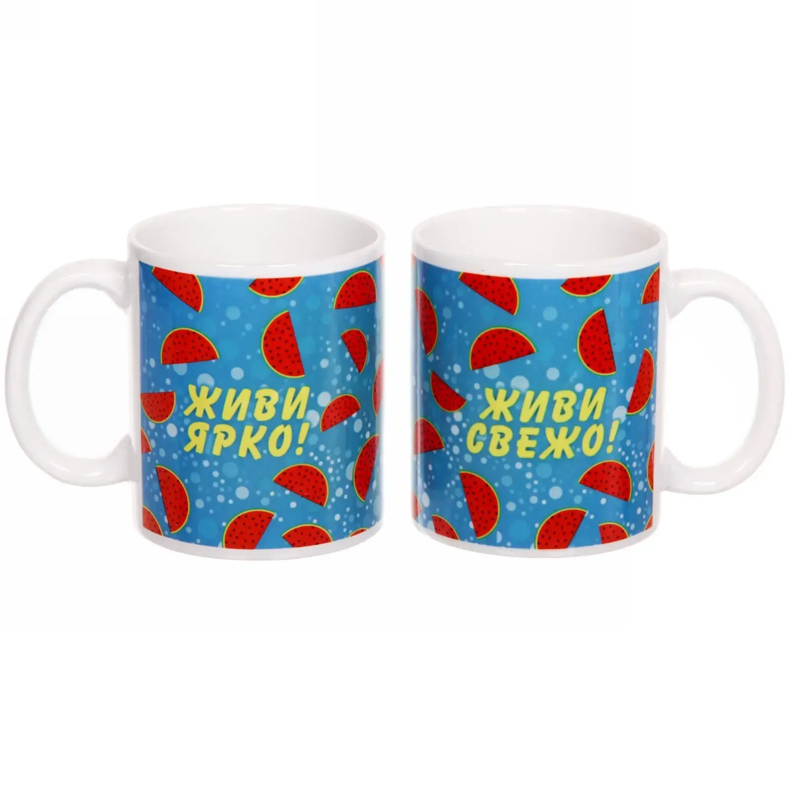 Выбор этой кружки — это не только практичность, но и стиль. Яркий принт с надписями «ЖИВИ ЯРКО!» и «ЖИВИ СВЕЖО!» выполнен в контрастных цветах, что делает кружку привлекательной и заметной. Керамика, из которой она изготовлена, обеспечивает долговечность и легкость в уходе. Вы можете смело мыть ее в посудомоечной машине, не опасаясь за сохранность рисунка.