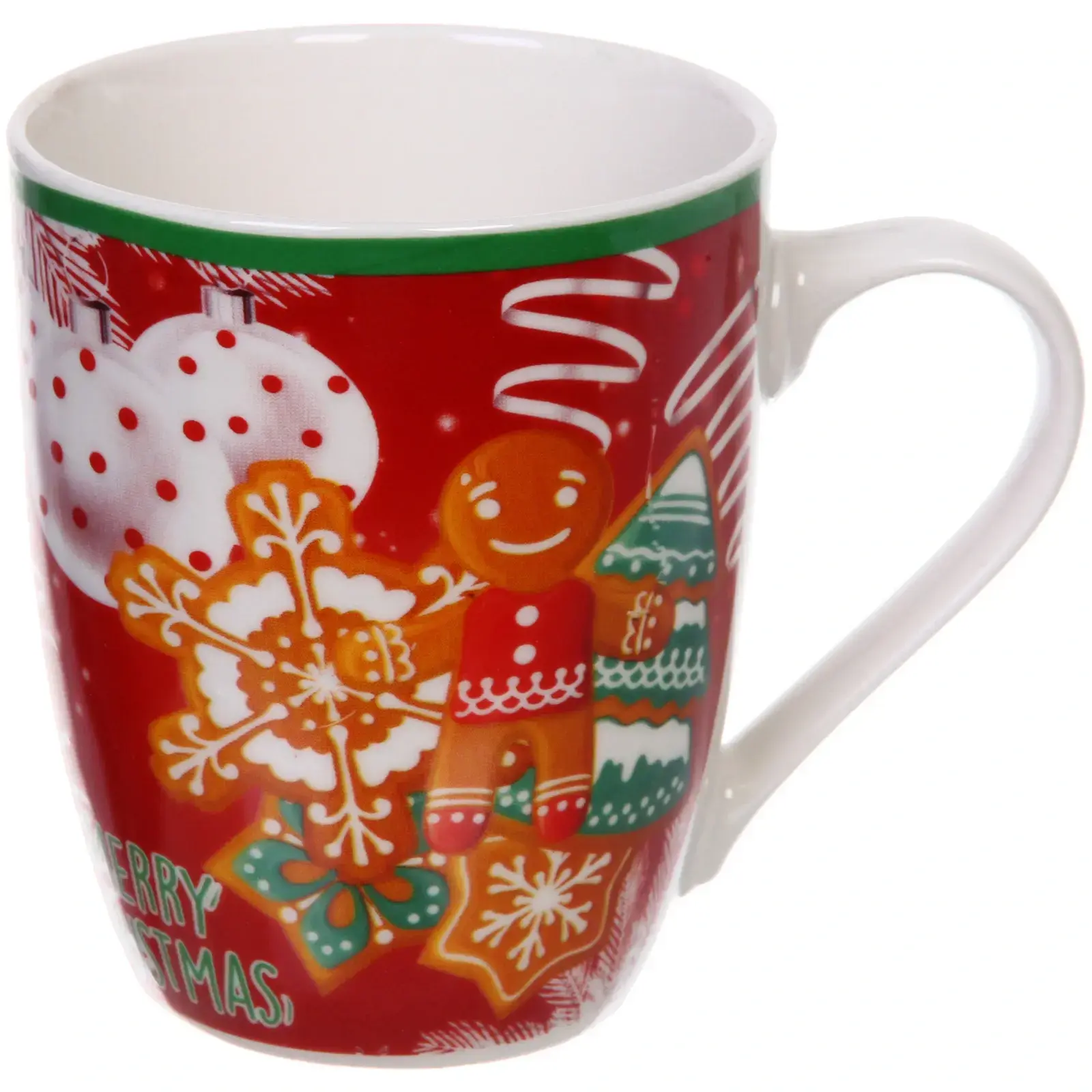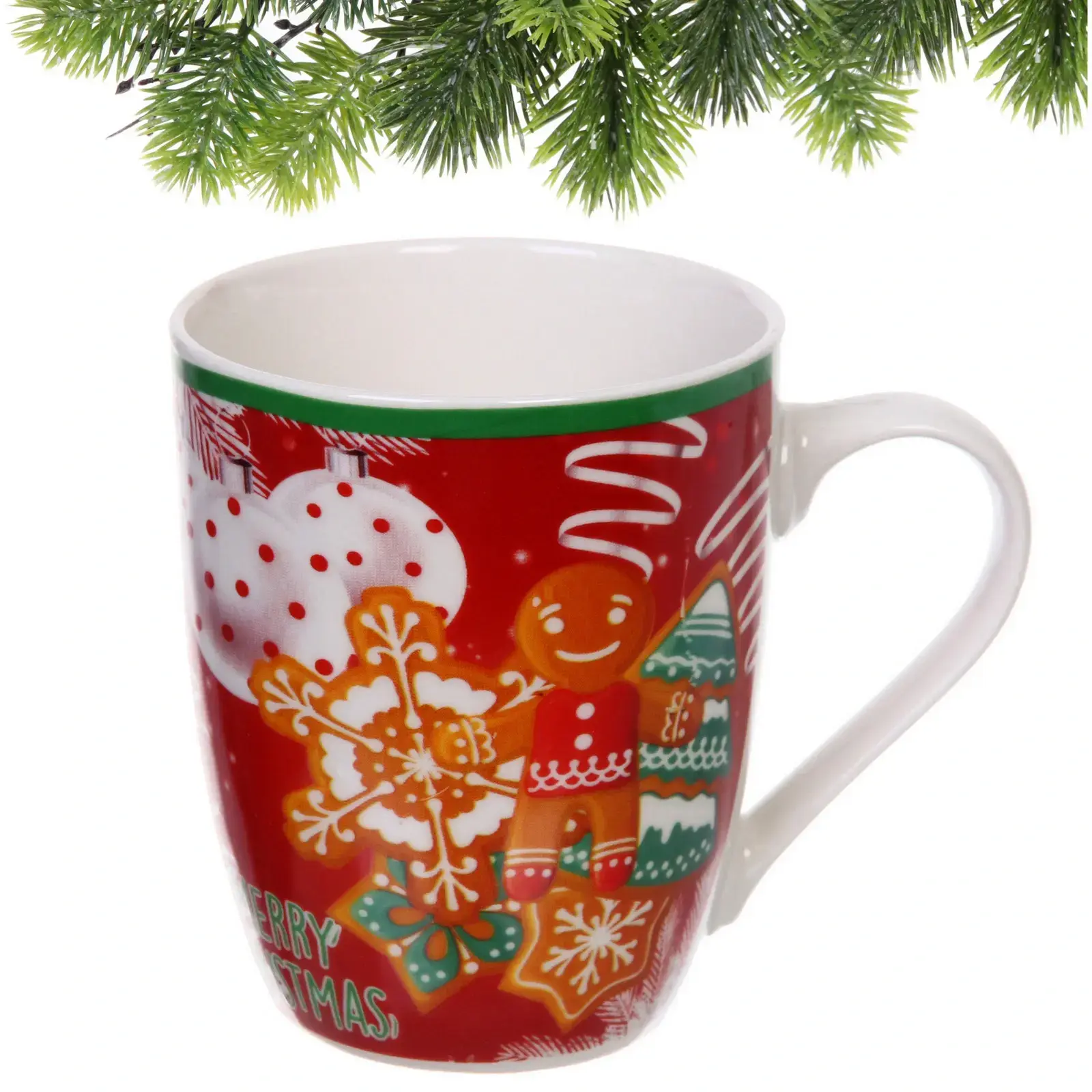 Кружка имеет стандартные размеры и форму, что делает её универсальной для любого стиля. Красный цвет с белыми и зелеными элементами придаёт ей праздничный вид, а надпись «MERRY CHRISTMAS» добавляет особый шарм. Не упустите возможность сделать этот новогодний аксессуар частью вашего праздника!
