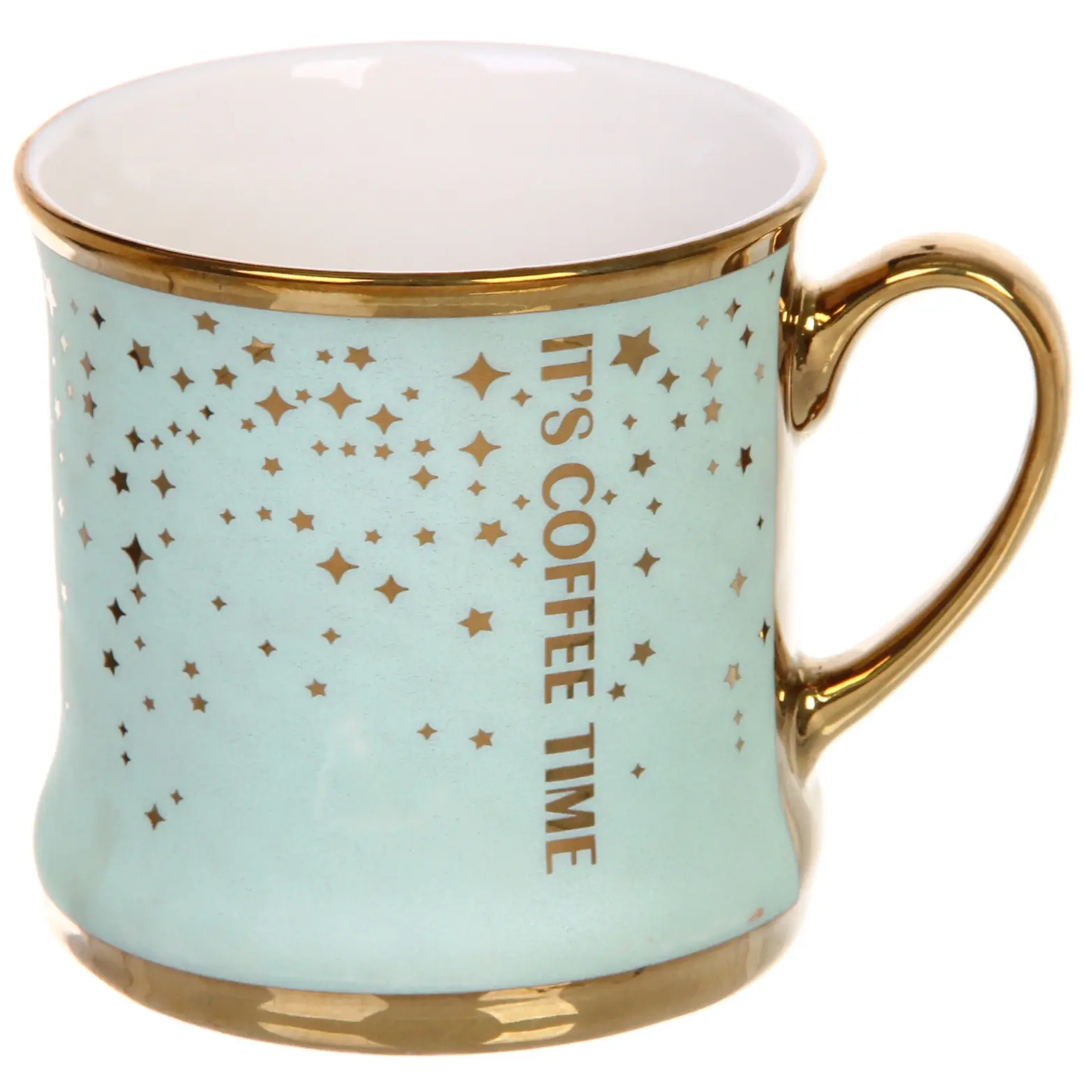 Эта керамическая кружка объёмом 340 мл станет вашим незаменимым помощником для наслаждения горячими напитками. Благодаря уникальному дизайну с золотыми звёздочками и надписью «IT'S COFFEE TIME», она добавит нотку уюта и стиля в каждое утро. Керамика, из которой изготовлена кружка, обеспечивает комфортное тепло, позволяя вам наслаждаться любимым напитком без риска обжечь руки.