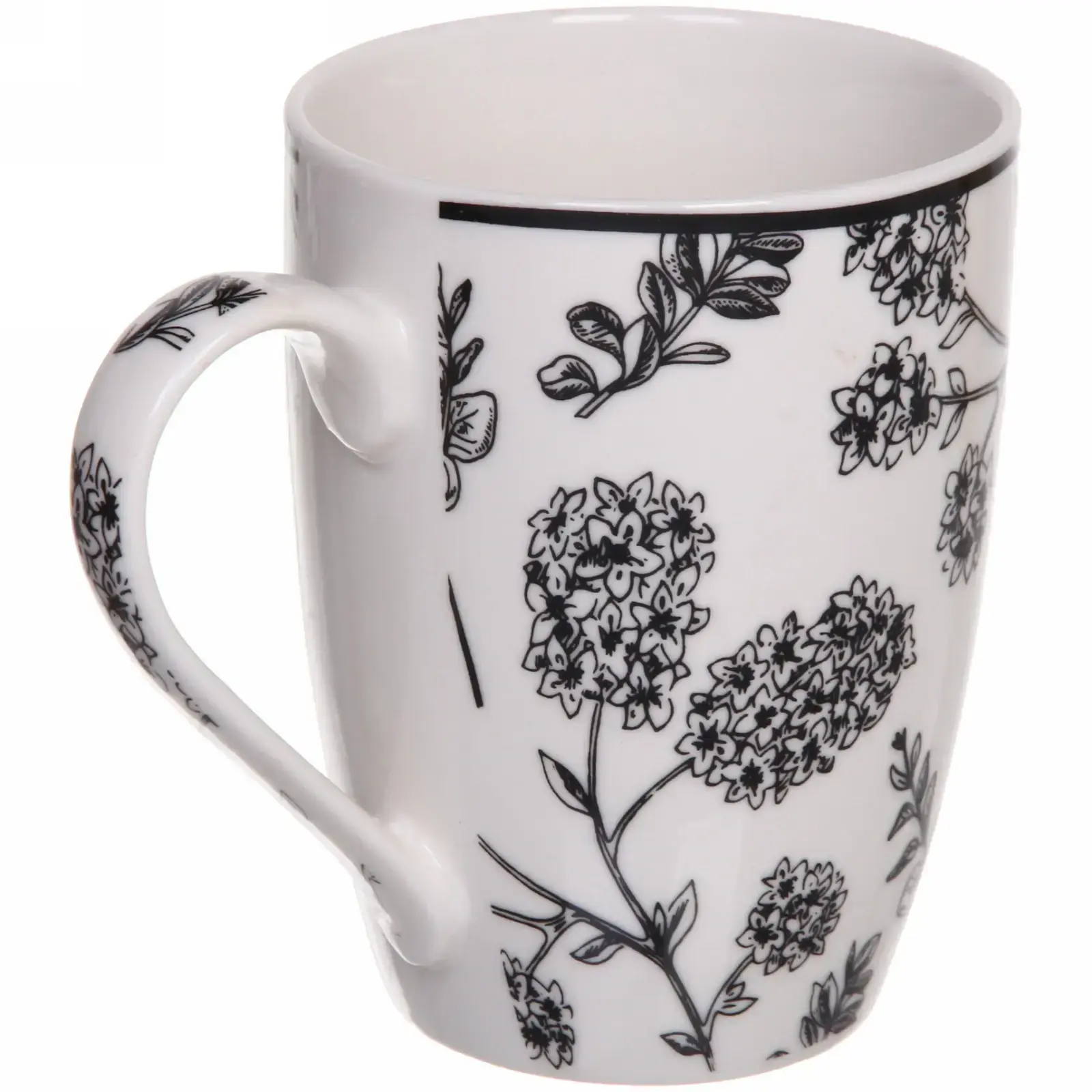 Эта керамическая кружка объемом 350 мл с уникальным дизайном «Букет» станет не только стильным дополнением вашей кухонной посуды, но и источником комфорта при каждом глотке. Белый фон с черным растительным узором создает элегантный контраст, который привлекает внимание и подчеркивает вашу индивидуальность.