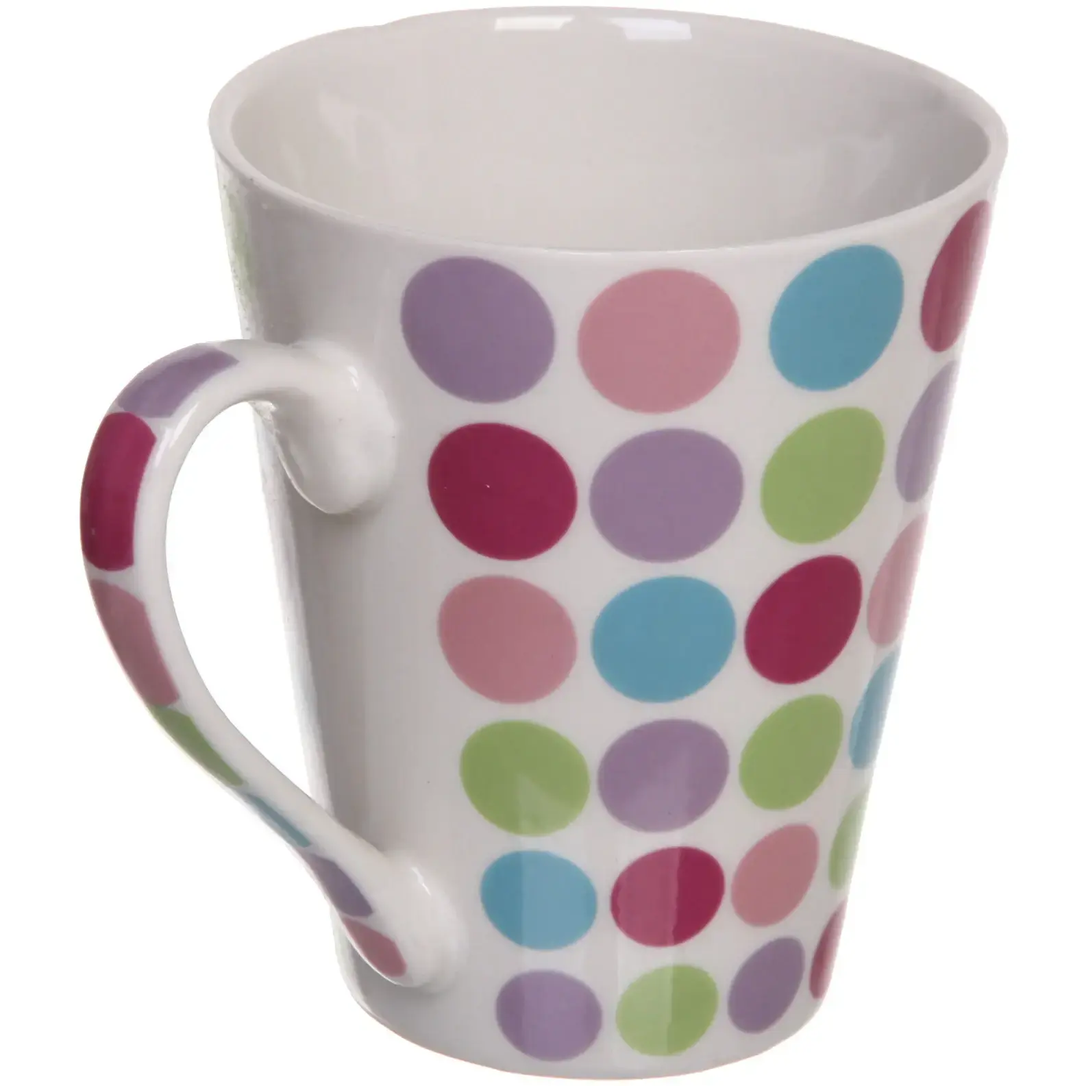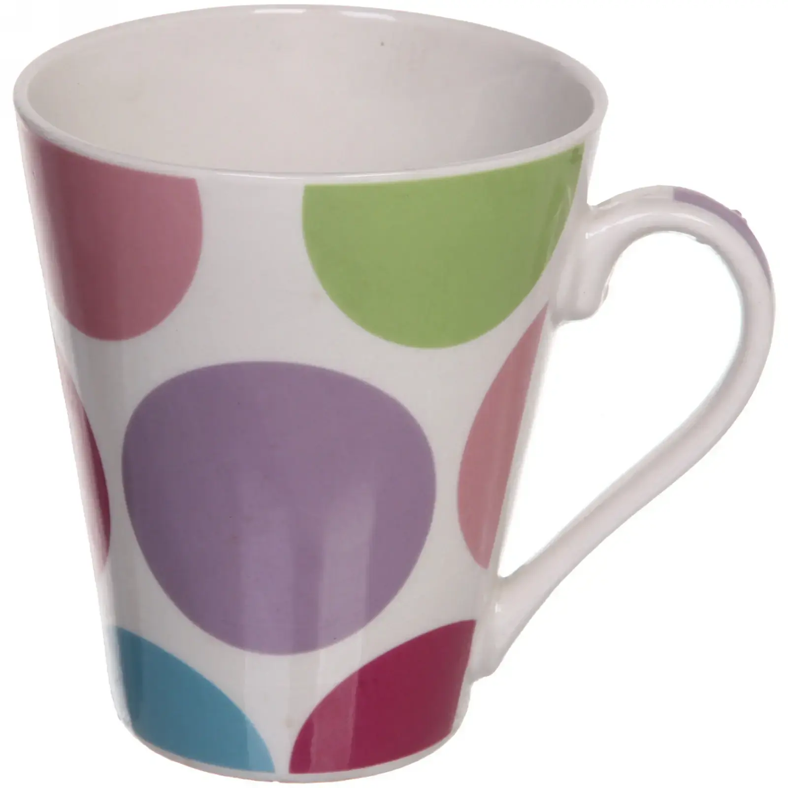 Эта керамическая кружка объемом 350 мл станет не только практичным, но и стильным дополнением к вашему столу. Яркий дизайн с разноцветными кругами на белом фоне добавит радости в каждую чашку чая или кофе. Удобная ручка обеспечивает комфортное использование, а гладкая поверхность легко очищается после использования.