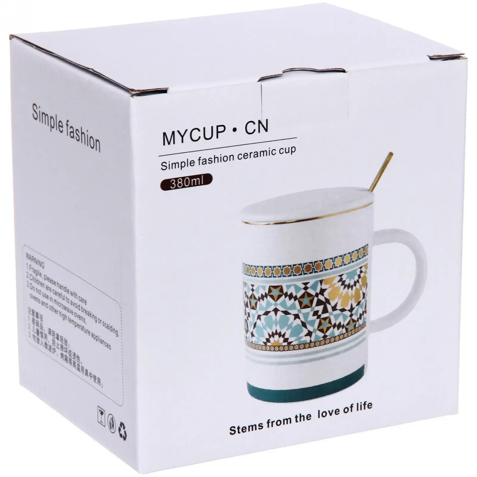 Кружка «Калейдоскоп» предназначена для повседневного использования. Она отлично подходит для чая, кофе или холодных напитков. Удобная ручка и легкий вес делают ее комфортной для удержания. Крышка с отверстием для соломинки позволяет наслаждаться напитками без лишних хлопот. Ложка, выполненная в золотистом цвете, добавляет изысканности и удобства при использовании.
