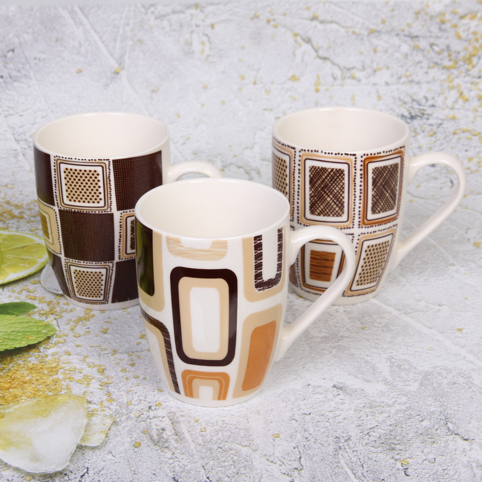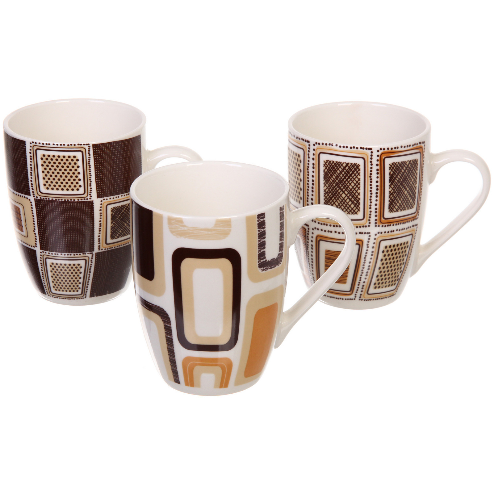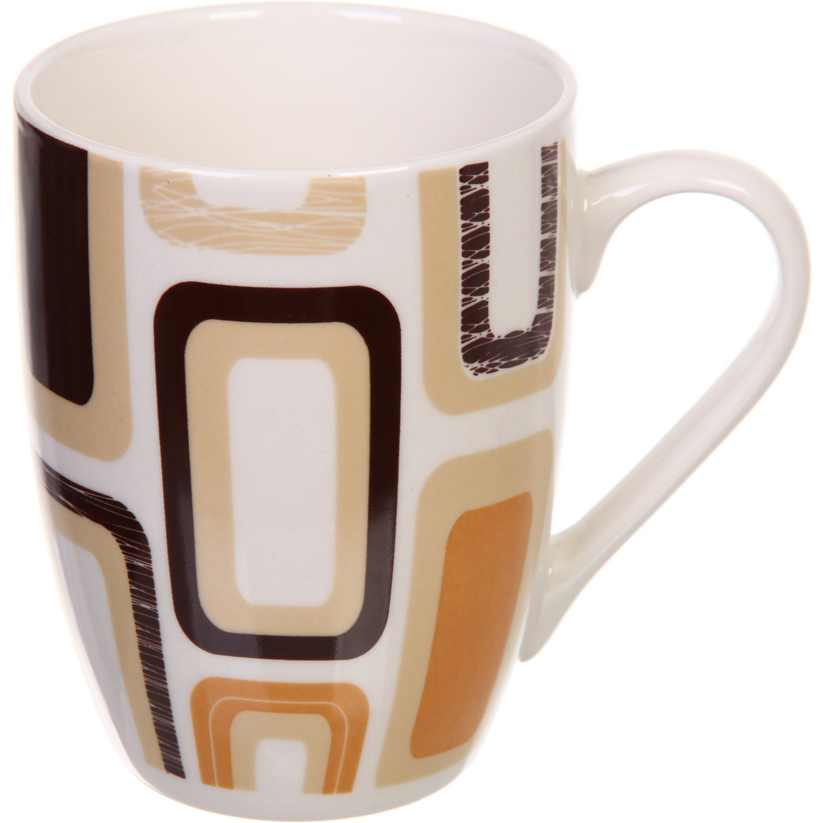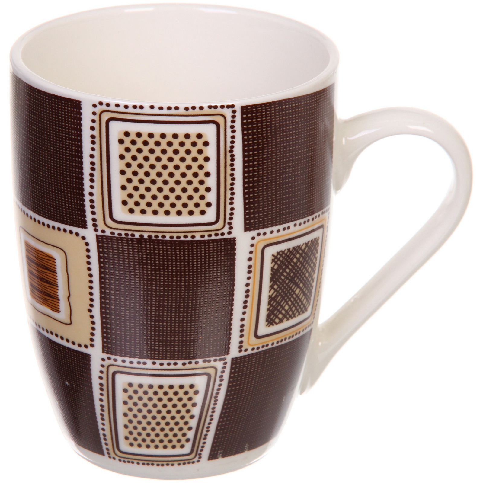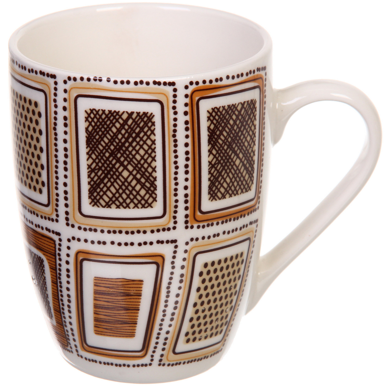 Кружка имеет стандартный объем 350 мл, что делает ее универсальной для различных напитков. Коричневый цвет и геометрические узоры придают ей современный вид, который отлично впишется в любой интерьер. Размеры кружки соответствуют стандартам, что позволяет удобно размещать ее в кухонных шкафах и на столах.